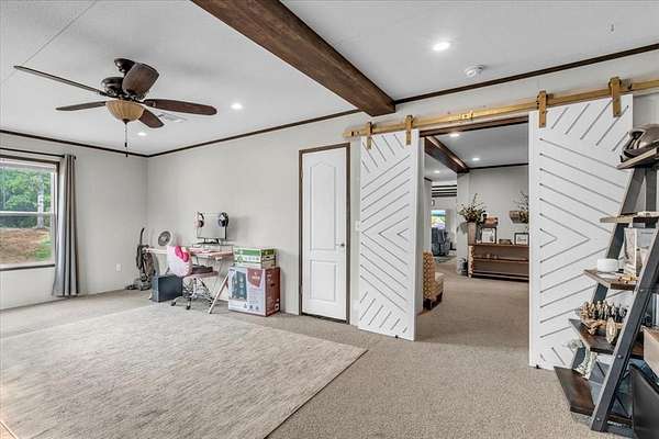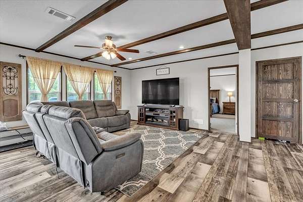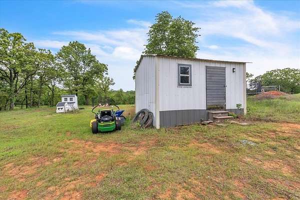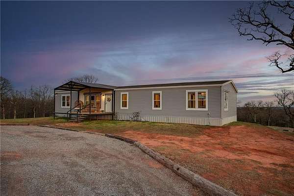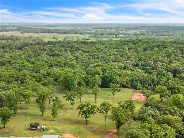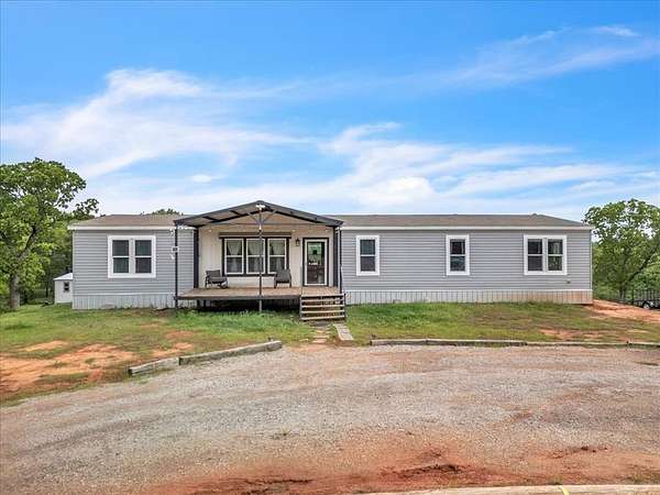 Brand new impact-resistant roof (installed December 2025) that saves hundreds of dollars on your homeowners insurance! Qualifies for 0% Down USDA Financing and is also eligible for FHA and VA loans. Experience peaceful country living on 10 beautiful acres under wide-open Oklahoma skies with this 2019 custom-built home that is completely move-in ready. The sellers have already taken care of key upgrades, including a professionally installed in-ground storm shelter for safety and peace of mind. This spacious 4 bedroom, 2 bath home offers two large living areas, a bonus room, and an oversized laundry with sink and mud bench. The open kitchen features a grand island, farmhouse sink, pantry, and generous counter space perfect for entertaining. The dining area easily fits a large farm table, and the living room is accented with rustic wood beams and natural light. The private primary suite includes a soaking tub, double vanities, separate shower, and a huge walk in closet. Three additional bedrooms and a built in study nook provide flexible space for family, guests, or a home office. Outside, enjoy covered front and back porches with panoramic views of nature and wildlife. A private shooting range with insulated berm makes this property a rare find for outdoor enthusiasts. Please note that the short dirt road leading to the property is privately maintained. While it can be a little rough at times, all of the neighbors contribute to its upkeep and work together to keep it accessible throughout the year. With USDA 0 percent down, VA, and FHA financing options, a storm shelter already in place, and an inviting country setting, this home delivers comfort, safety, and true Oklahoma country living ready for its next owner to make it home.