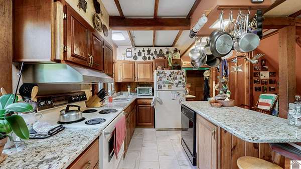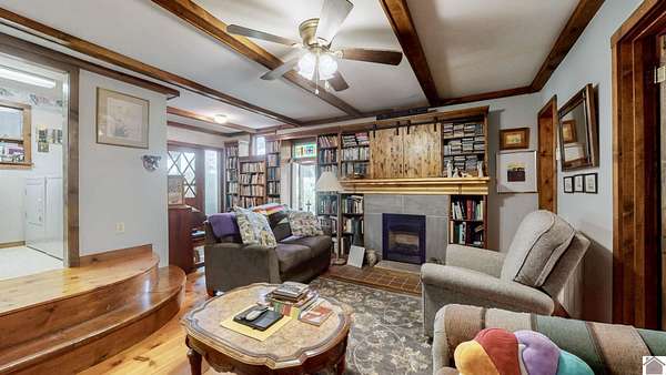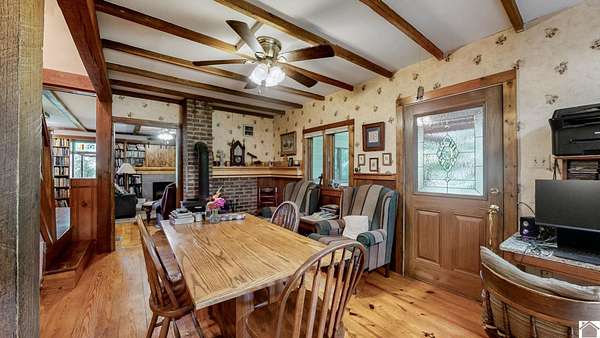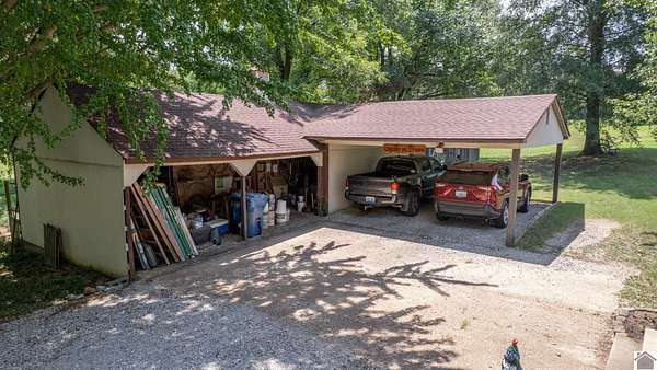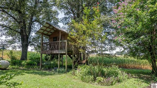 Welcome to the homestead you've been imagining, a peaceful 20-acre retreat nestled in rural Kentucky. With mixed open and wooded land, this property offers the perfect balance of privacy and productivity. The 3-4 bed, 2.5-bath home blends charm and function, featuring cherry cabinetry, granite countertops, a wood-burning stove, and whole-house generator. Enjoy relaxing mornings on the screened porch with views of the tree house and garden. Inside, thoughtful details include built-in shelves, a laundry chute, a basement that serves as a storm shelter and an attached workshop. The built-in bunk bed provides a fun and functional sleeping area for kids or guests. The primary also includes a private office--ideal for remote work or a creative space. This working farm is move-in ready and comes with outbuildings, a wildflower garden, a lap pool, and even a treehouse. Whether it's the privacy, the homesteading potential or the lovely home that draws you in, you're sure to be enchanted!