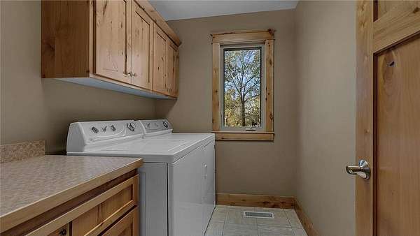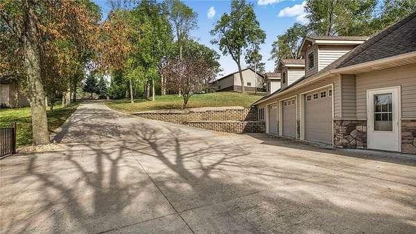The insulated and heated garage (56.5x28) boasts tiled floors, a kitchenette, and extra storage above--ideal for gatherings or hobby space. Plus, a newly built 30x50 heated and finished garage offers additional parking and workspace. Recent updates include a new furnace (2023), new Culligan water softener (2021), new stationary dock (85-90 ft) with an additional 60 ft water dock, new cement driveway with drainage, fresh paint throughout, and new landscaping and rock for improved drainage and erosion control.
