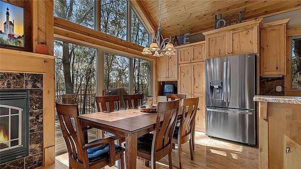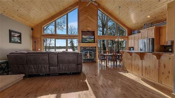 Immaculate and move-in ready, this beautifully crafted home offers quality finishes throughout and incredible lake views from every angle. The newly updated kitchen features stainless steel appliances, knotty alder cabinetry, granite countertops, and hardwood floors. The main-floor primary suite includes a jetted tub, separate shower, and gorgeous tile work. Enjoy a bright and open lakeside living area with a wall of windows and access to the new maintenance-free Azek deck. The lower-level walkout features a new paver patio and sidewalk leading to a lakeside fire pit--perfect for relaxing or entertaining.
