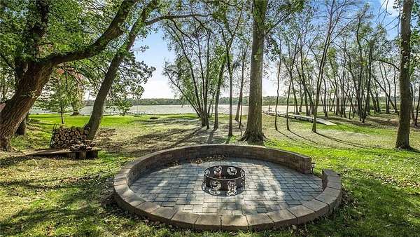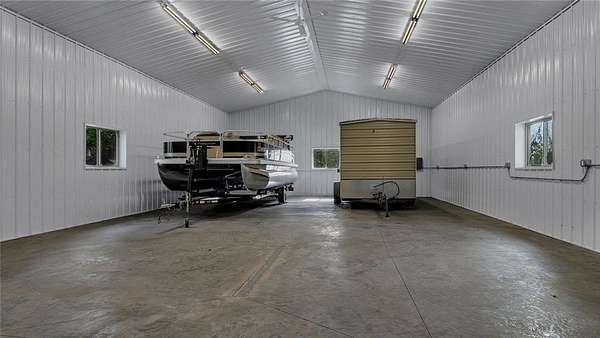 The insulated and heated garage (56.5x28) boasts tiled floors, a kitchenette, and extra storage above--ideal for gatherings or hobby space. Plus, a newly built 30x50 heated and finished garage offers additional parking and workspace. Recent updates include a new furnace (2023), new Culligan water softener (2021), new stationary dock (85-90 ft) with an additional 60 ft water dock, new cement driveway with drainage, fresh paint throughout, and new landscaping and rock for improved drainage and erosion control.