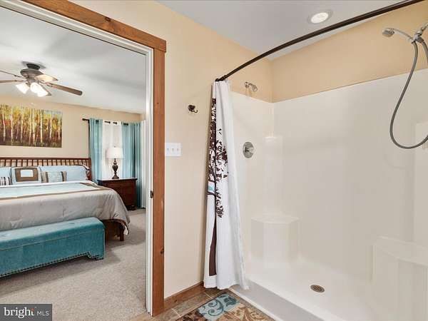 - Carpet, Ceiling Fan(s), Combination Kitchen/Dining, Dining Area, Eat-In Kitchen, Entry Level Bedroom, Family Room Off Kitchen, Island Kitchen, Primary Bath(s), Recessed Lighting, Stall Shower Bathroom, Table Space Kitchen, Walk-In Closet(s), Walk-In Shower Bathroom, Whirl Pool/Hot Tub, Wood Floors