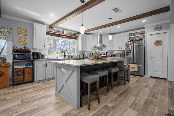 Welcome to this exceptional 2020 Palm Harbor Magnum 76! This stunning 4-bedroom, 2-bathroom home combines modern elegance with ultimate comfort. Step into the gourmet kitchen, where marble countertops, a spacious island breakfast bar, and a massive walk-in pantry create the perfect space for culinary enthusiasts. The master suite is a true retreat, boasting dual sinks, a luxurious garden tub, an oversized 7x3 shower, three walk-in closets, and a built-in vanity. Additional highlights include new light fixtures and ceiling fans in every room for a bright and inviting atmosphere. Enjoy outdoor living with front and back covered patios, a chain-link fenced backyard, and beautiful landscaping. The property sits on 2 acres and features a 24x40 garage with four roll-up doors and openers, plus concrete sidewalks and an extra parking pad. Don't miss this incredible opportunity--schedule your private showing today!