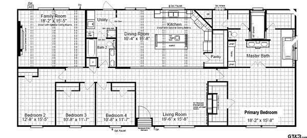 - Bathroom x 2, Bedroom x 4, Den, Dining Room, Family Room, Kitchen, Living Room, Utility Room
