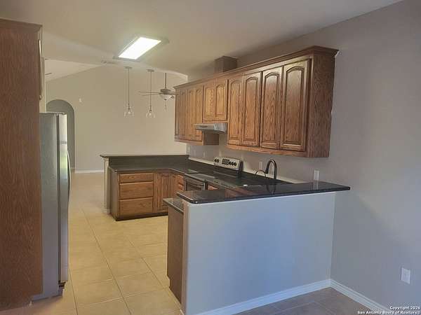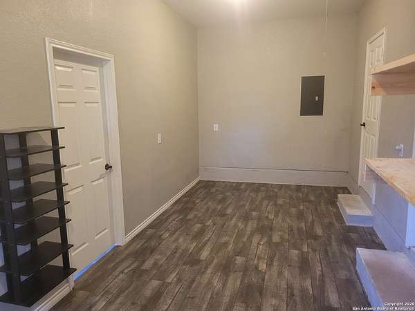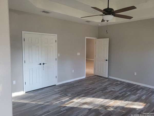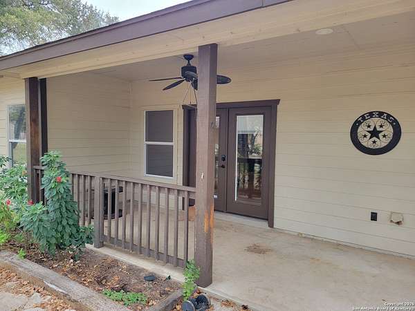 Spacious 4-bedroom, 2.5-bath home on 1.5 acres with new A/C, large insulated shop, and added flexible space in Forest Woods! Situated on a fully fenced 1.5-acre lot in the peaceful Forest Woods subdivision of Natalia, this approximately 2,500 sq ft home offers flexible living, thoughtful upgrades, and exceptional outdoor amenities. The open-concept living area features vaulted ceilings, abundant natural light, and a striking rock fireplace. The kitchen includes custom cabinetry, granite countertops, and a reverse osmosis water filtration system. The split primary suite provides a private retreat with sitting area, walk-in closet, dual vanities, separate shower, and soaking tub. The former attached garage has been professionally converted into a conforming fourth bedroom with closet, along with a dedicated laundry room and half bath. A brand-new central A/C system adds peace of mind and energy efficiency. Outdoors, the property features mature trees, a paved circular driveway, and an automatic gate. An impressive 30x40 insulated shop with electricity, water and preplumbed for a bathroom but not yet connected to septic, offers excellent space for a workshop, business use, or storage. Additionally, a separate small "she shed" style building with electricity and A/C provides flexible space ideal for a home office, studio, or hobby room. Vacant and easy to show, this property offers comfortable country living with outstanding versatility.