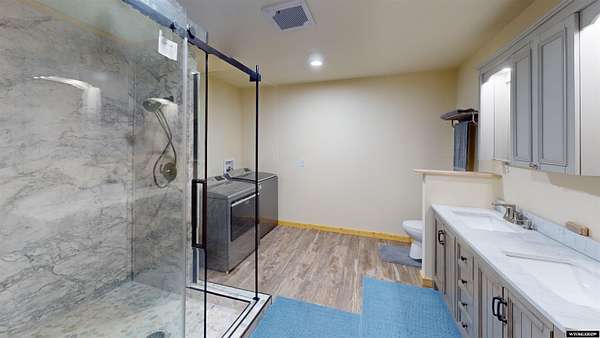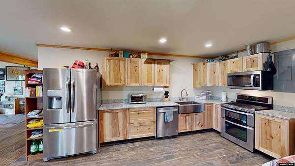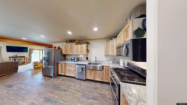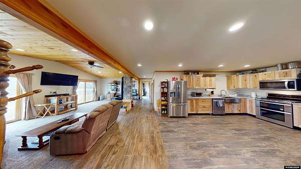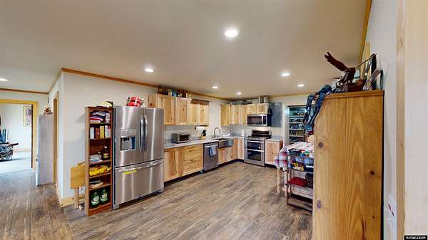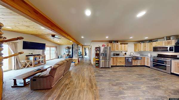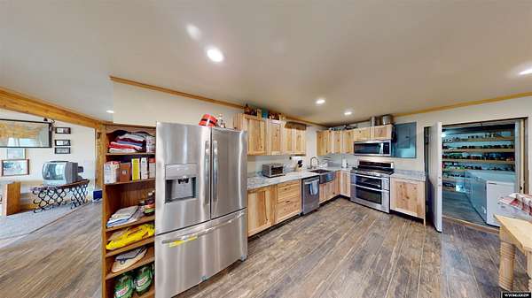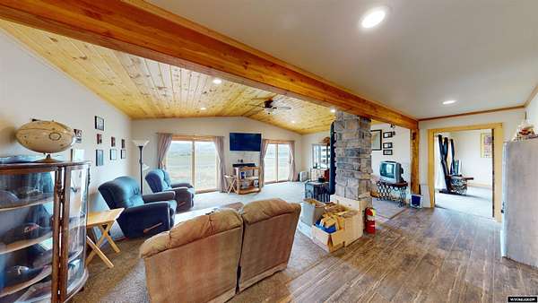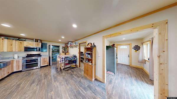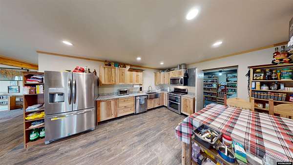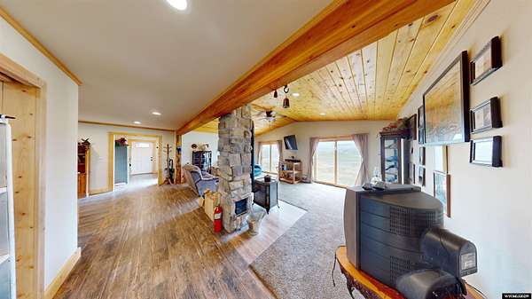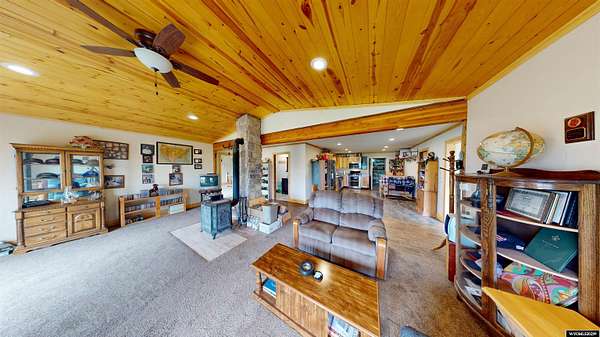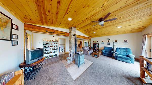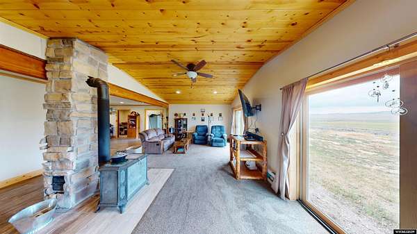 Welcome to 254 Dallas North, a sweet, well-maintained, newer construction one-level home with a large shop tucked into the beautiful Red Canyon area, with a pristine view of the lake and the Wind River Range!This home has a prime location, situated in solitude on 6.5 acres, the home was built on the very back corner of the property's acreage, creating a private retreat, and open usable land for your rural Wyoming lifestyle. Kick your shoes off in the large mudroom/foyer. You'll immediately feel at home stepping into the bright, warm and inviting living room with double slider doors that face the views. This home has a grand living room, large dining room and sizable kitchen all open to each other and serving as one impressive gathering area! The family room has beautiful tongue-and-groove cathedral ceilings and wood stove with stone hearth. Beautiful hickory cabinetry, granite counters, farmhouse sink and stainless appliances make the kitchen a lavish place to cook, plus there's an additional room off the kitchen that is convenient for freezer space and sizable pantry storage. There are two bedrooms, and both bathrooms have upgraded finish quality. The primary bedroom is luxurious with two slider doors, mountain views, double walk-in closets and an ensuite bathroom with spacious tile shower. The living is easy, maintenance simple, and utilities efficient in this earthen home design. Additional construction details include tiled flooring, radiant in-floor heat, metal roofing, instant hot water and a grey water system that is set up to efficiently water the garden and greenhouse. The buried 4,000 gallon cisterns service the household water use. The combination of radiant in-floor gas heat and wood stove heat sources gives plenty of winter comfort plus backup heat options. You'll love the 30' x 40' outbuilding that fits all your cars, toys and provides workshop space. The shop has a concrete floor, two 10' tall x 10' wide overhead doors and is plumbed for a bathroom. Additional exterior features include burly steel post (set in concrete) perimeter fencing, ATV garage, well-constructed chicken coop, established garden with greenhouse and septic drain for RV. The septic system is permitted through Fremont County, WY. Within a mile of this property there is vast, highly accessible Bureau of Land Management property so you can easily get out to enjoy your favorite recreational activities. The area has an abundance of antelope, deer and elk you will see roaming. If you are looking for a beautiful, private setting, public land access, a low-maintenance home with a shop and all within 15 minutes from the charming town of Lander, Wyoming then this one's for you! Call today!