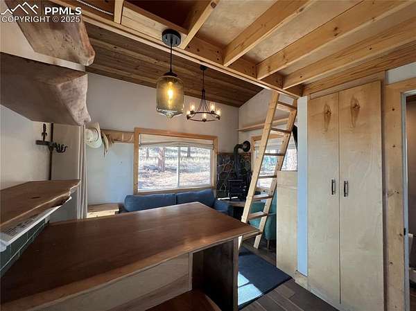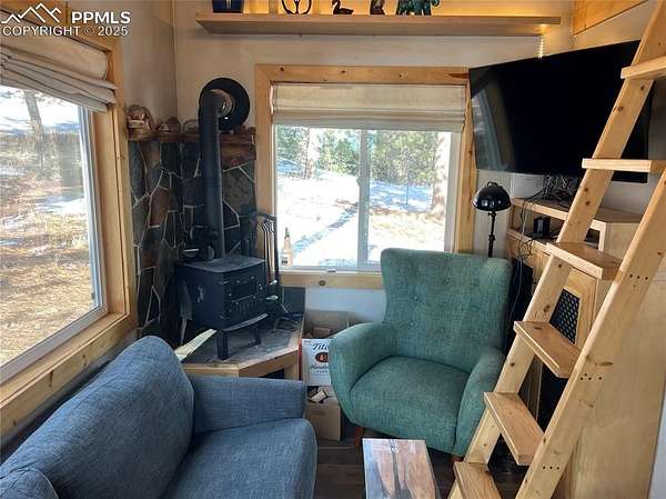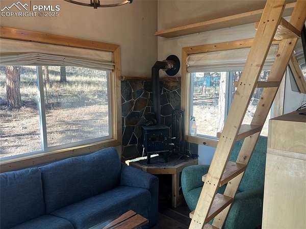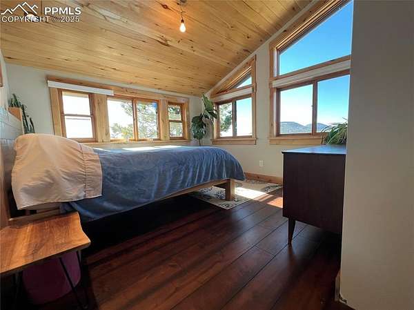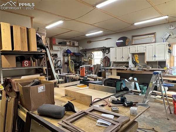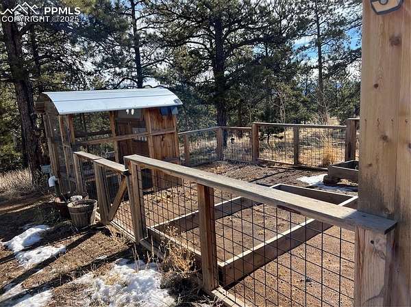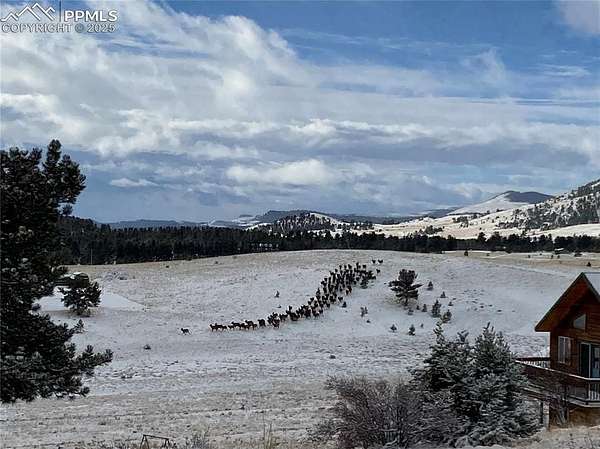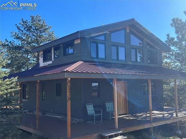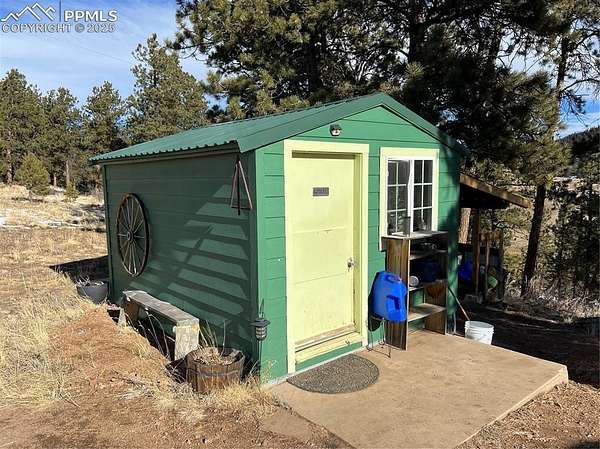 Welcome to this charming mountain retreat, nestled on 7.53 acres at the end of a private cul-de-sac. Enjoy breathtaking views of Pikes Peak and the surrounding Rocky Mountains from the expansive 1,350 sq. ft. wraparound deck. This property offers incredible features, including a spacious 39' x 29' insulated garage with storage rooms and a workshop. A separate bathhouse provides additional convenience with a shower, restrooms, and a washer and dryer. Additionally, a cozy one-bedroom cabin, complete with a kitchen, bathroom, and living room heated by a wood stove, adds to the property's appeal. With rolling meadows, peaceful forests, and abundant wildlife like deer and elk, this property is a nature lover's paradise. Whether you're looking for a private getaway or the perfect place to build your dream home, this unique opportunity awaits! This property includes a brand new well pump with a backup cistern.
