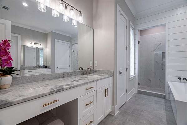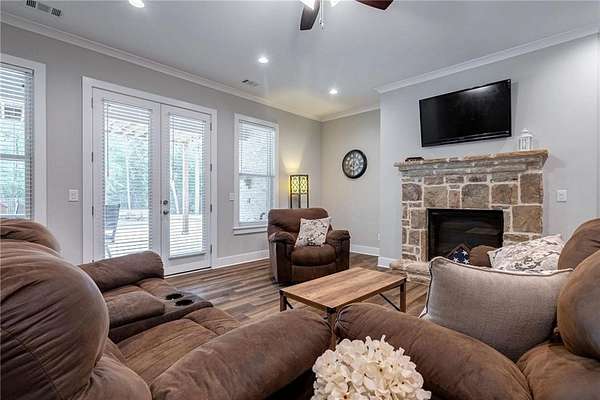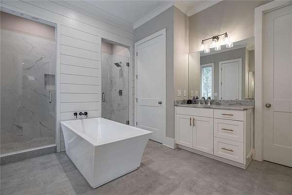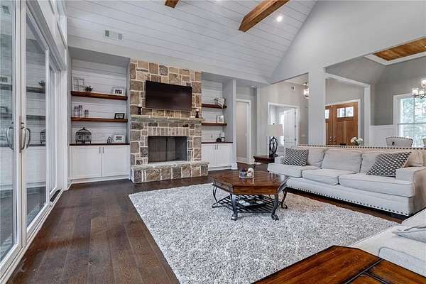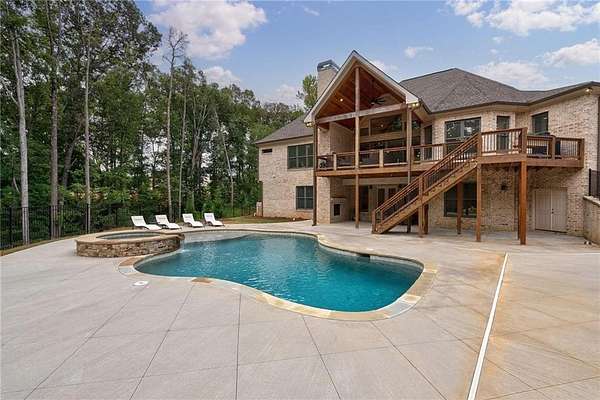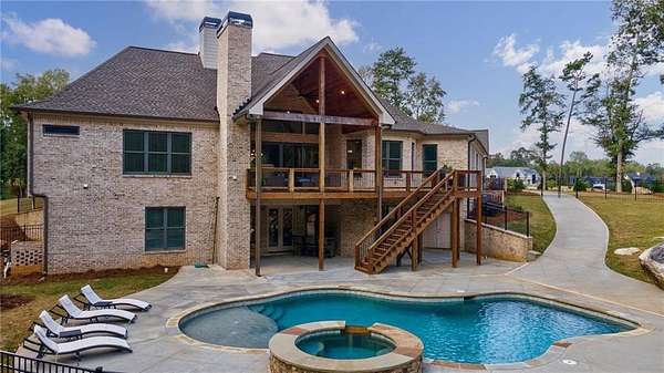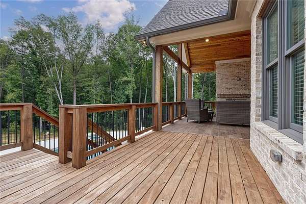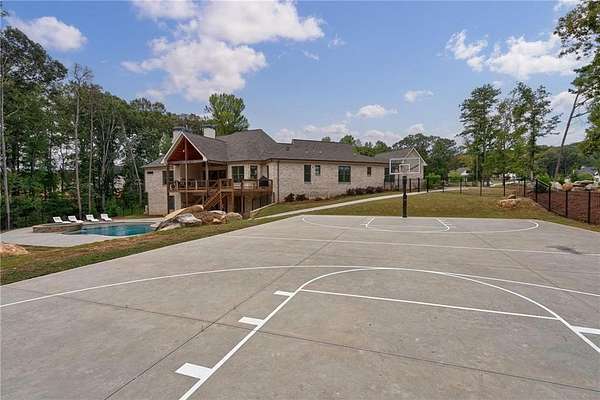 This Amicalola Cottage sits on almost 4.5 acres and is an entertainer's dream. All common areas are open-concept, with a master on the main. A laundry setup is in the master closet, with an additional laundry room in the main hallway. High ceilings run throughout the home, giving a luxurious feel. A butler's pantry with an additional walk-in pantry complements the oversized country kitchen that overlooks the living room and dining room. All bedrooms on the main floor have their own en suite with plenty of closet space. The living room walks out to an oversized covered back porch that overlooks the pool, basketball court, and backyard. The basement is wide open, allowing for a second living room, bar area, or game room. The basement bedroom is the same size as the master, with an enormous walk-in closet. There is approximately 800 square feet of unfinished basement that would be ideal for a workshop, gym, and movie theatre. The basement walks out to a covered patio with a fireplace, then out to a beautiful Gunite pool and spa. This home was designed with the entertainer in mind. This beautiful home is vacant and move-in ready. The agent is related to the seller.