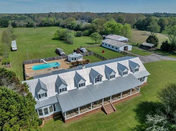 17.42 Acres | Private Pond | Guest House | Equestrian Facilities | Multi-Generational Living Welcome to an exceptional country estate designed for horse lovers and those seeking a spacious multi-generational home with privacy, elegance, and first-class amenities. Situated on 17.42 acres of picturesque land, this estate is fully equipped with equestrian facilities, expansive living spaces, and multiple residences, making it ideal for both serious riders and families looking to live together without sacrificing space or comfort. For the Equestrian Enthusiast 7-stall barn with a tack room - perfect for boarding or training horses Two separate pastures and corral area - ample space for turnout and training Private pond with a dock - a serene setting to unwind after a long day of riding Wired workshop, storage building, and pole barn - ideal for equipment and feed storage Designed for Multi-Generational Living The main residence spans 5,600 sq. ft., offering both private retreats and inviting common areas: Main-Level Owner's Suite - Spacious primary retreat featuring a cypress wood steam shower, jacuzzi tub, supersized double vanity, and a walk-in closet designed for luxury Private In-Law Suite - Includes its own bedroom, ensuite bath with jacuzzi and separate shower, and ample closet space Three Additional Upstairs Bedrooms - Each generously sized, paired with three bathrooms, plus a large media/bonus room (with surround sound and a balcony overlooking the property) Luxury Country Living & Entertaining Spaces Gourmet Kitchen - Custom wood cabinetry, MASSIVE island with seating, stainless steel appliances, and a walk-in pantry Elegant Living Spaces - Includes a formal dining room, great room with stone fireplace, formal living room, and a private office with built-ins Expansive Front & Back Porches - Ideal for enjoying sunsets, morning coffee, or simply taking in the tranquil surroundings Additional Living Quarters & Outdoor Amenities Guest House (700 sq. ft.) - Features a spacious living/sleeping area, kitchenette area, and private bath - perfect for extended family, guests, or even rental income Pool House/Private Office - Can serve as a dedicated workspace, gym, or additional guest space In-Ground Pool - A resort-style retreat to enjoy Georgia summers Metal Roof (2019) - Ensuring durability and long-term protection The Perfect Blend of Serenity & Convenience