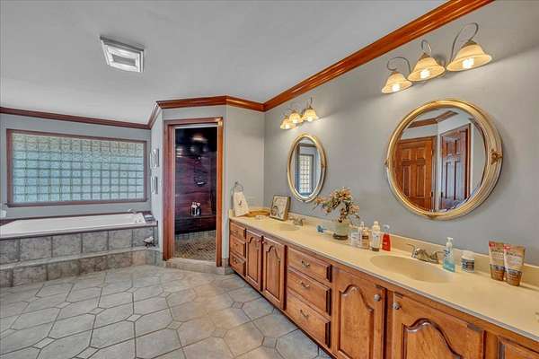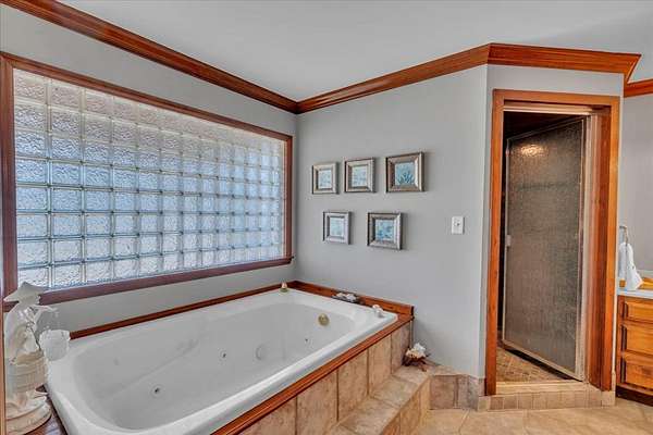 - Built-In Bookcases, Crown Moulding, Granite Counter Tops, In-Law Floorplan, Kitchen Island, Lighting Recessed, Newly Painted, Pantry, Separate Shower Primary, Sitting Area Primary, Split Floor Plan, Surround Sound Wired, Walk-In Closets