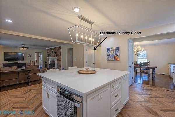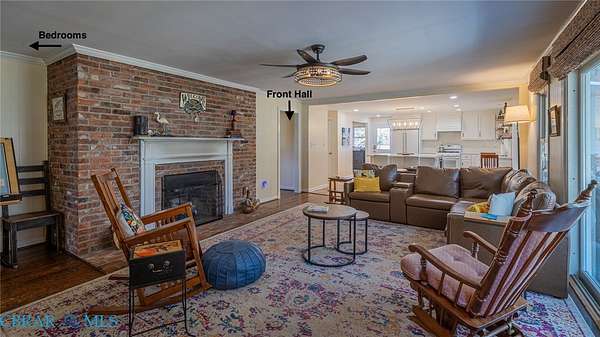 - Bedroom On Main Level, Bookcases, Built In Features, Ceiling Fans, Double Vanity, Eat In Kitchen, Fireplace, Separate Formal Dining Room, Solid Surface Counters, Walk In Closets