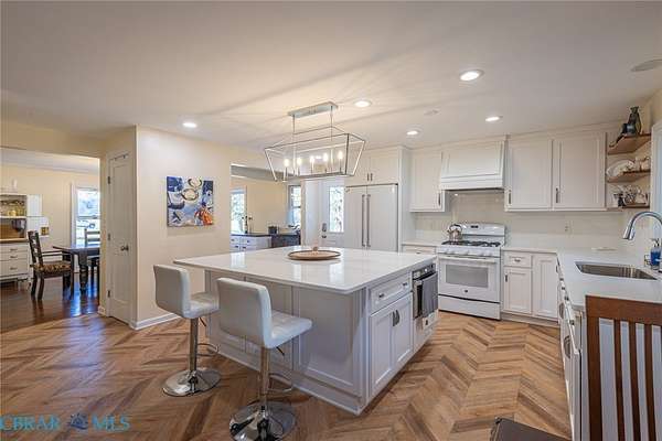 Beautifully updated two-level home with hardwood floors set on over three private acres with kayak depth water on Belmont Creek. The property features a completely remodeled kitchen (2023) with large center island offering seating and storage, stone counter tops, new cabinetry and vinyl plank flooring. The first floor includes a large family room with gas fireplace, a formal living and dining room, a primary first floor ensuite bedroom with remodeled bath (2023) and a second first floor bedroom and hall bath, remodeled in 2020. The second floor boasts two bedrooms and hall bath renovated in 2016 and two large walk in storage spaces off each bedroom. A large screened back porch with access to the back loading 2 car attached garage provides the perfect place to relax while overlooking the expansive backyard. This home is equipped with All Points Broadband for reliable high-speed internet and boasts a new roof in 2024. Located just minutes from Yankee Point Marina and 15 miles from Kilmarnock.
