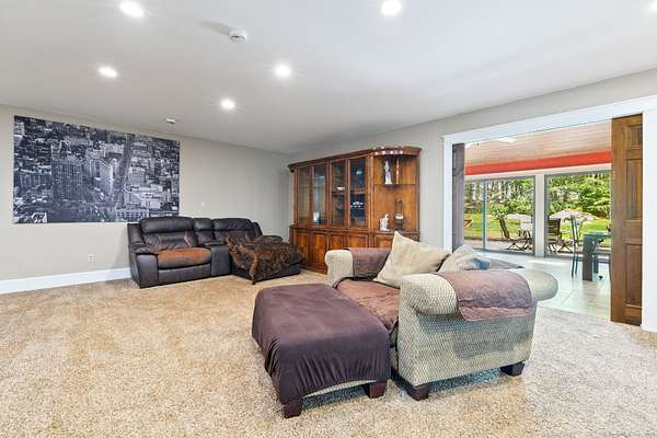 Discover a serene 2.1-acre retreat in the heart of Mystic, where modern luxury meets tranquil privacy. This meticulously maintained 5-bedroom, 2.5-bath contemporary home blends seamless design w/everyday comfort, perfect for both relaxation & entertaining. Ideally located, it's a short commute to the Coast Guard Academy, EB, Pfizer, Old Mystic Village, local beaches & marinas. The main level welcomes you w/a stylish kitchen featuring granite countertops, a farmer's sink, stainless steel appliances, abundant natural light & a spacious walk-in pantry. The living & media rooms offer cozy wall-to-wall carpeting & a striking stone fireplace, while the family room is warmed by an additional fireplace. The sunroom, a true highlight, boasts a fireplace, skylights, tile flooring, ceiling fans, & 3 sets of sliders opening to a newly updated IPE wraparound deck w/gazebo-perfect for outdoor gatherings. A convenient half bath completes this level. Upstairs, the primary bedroom impresses with a vast walk-in closet, dressing area, built-ins & a full ensuite bath. Four additional bedrooms-two with new hardwood flooring, two w/carpeting-offer generous closets & easy access to a large laundry room. A well-appointed bathroom with a jetted tub & separate shower serves this level, alongside a versatile office space. The partially finished basement includes a game room & workshop, adding utility & practicality to this stunning home. Embrace modern convenience in a peaceful, wooded paradise.
