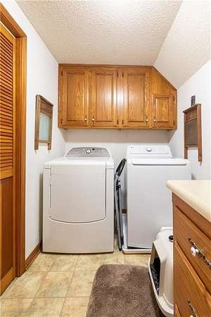 - Ceiling Fan(s), Custom Cabinets, Stained Cabinets, Vaulted Ceiling(s)