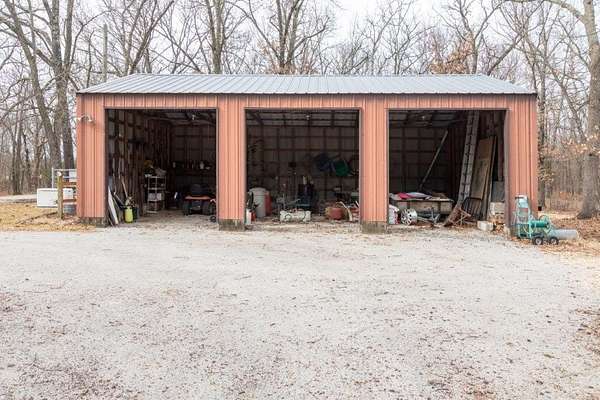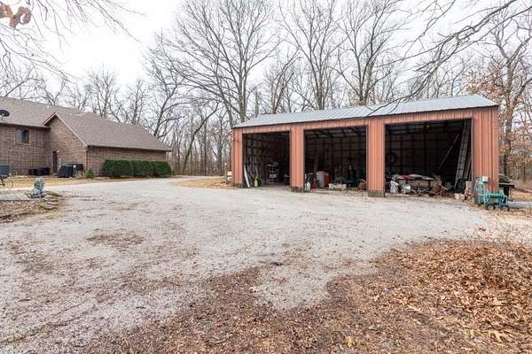 Stunningly Wooded and completely Private 48Acre Oasis, with all off-grid opportunities in place. 4 bedroom 2 1/2 bath near Stockton Lake, is completely invisible in it's setback from the street, completely private, working acreage in the front, and Wooded in the back. The home is a "solar envelope" offering GREEN double ceiling and double walls on the north and south allowing interior circulation around living area to maximize energy efficiency. As the air circulates under the home the earths acts as a thermal bank to cool in the summer, very similar to the principles of GEO-Thermal and Passive Solar. In addition the home has a solar electric system and a backup generator. The entire right side of the property is a 2 story Green House, Solarium, offer magnificent views of the woods, wildlife, trees and complete privacy. HVAC is all Heatpump, and for those frigid winter gales this home offers a Free standing Wood Burning Stove, plumbed from the basement. Kitchen is chef and entertainers delight with solid surface tops, stone backsplash, stained cabinets, cabinets and more cabinets. Master on Main floor is the perfect nest offering generous space, excellent closet space, and luxury Master Bath, including his and her vanities with granite tops, separate jacuzzi tub and shower. 3 large bedrooms in basement, all sharing a huge hall bath, living/rec room, Bar and Access, and access to a large patio. This home not only offers affordable living, green living, yet nothing is missing from civilization and function. 3 bay building, garage space will fit a camper and has electrical hookups, shop, storage, with room for the most robust tinkering or on site business. Hustle! Paradise doesn't wait.
