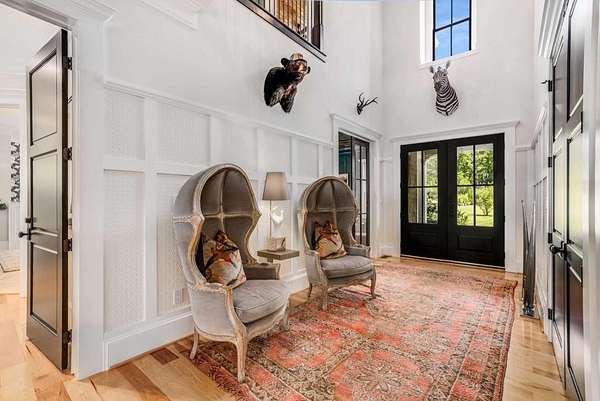$1M+ PRICE IMPROVEMENT - Welcome to this timeless private mountain estate on 23 acres in Blue Ridge, Georgia. Located just minutes from downtown Blue Ridge on all flat paved roads, enter through automated gates down the private tree-lined driveway unveiling the four-bay car barn (additional 3 car attached) and stunning 10,000 sq foot completely renovated and fully furnished home. Take in the incredible scenery of the pool, landscape, pasture, creek and beyond to the endless mountain views of the Cohutta Wilderness. The home and grounds underwent a significant renovation and enhancement over the past year including: exquisitely furnished with high end designer furniture, art, lighting, rugs, wallpaper, and decor; new basement level custom kitchen and bar; full gym and game room, spa room with infrared sauna; updated main level chef's kitchen; updated bathrooms; new paint throughout; custom wallpaper treatments; all new light fixtures, led can lights and ceiling fans; Sonos system; new spring fed well pump and pipes with whole house water filtration; two electric car chargers; and new powered entry gates with camera and app control. The exterior and grounds underwent a significant transformation as well, including: complete re-staining and painting the exterior; tree removal and landscaping design to gain complete privacy and spectacular views of the Cohutta Mountain Wilderness; new Sport Court with pickleball, volleyball, badminton, and basketball that could also be used as a helicopter pad; 15x50 heated saltwater pool and spa with pebble tec, commercial gas heater, Indiana limestone pavers, and RH teak furniture; Barn, chicken coop and fencing for animals; and hiking/ATV trails throughout the property. Located just 10 minutes from downtown Blue Ridge or McCaysville, 25 minutes to Blairsville private airport, 25 minutes to Ellijay, and 1.5 hours to Atlanta. The possibilities for this property are limitless: equestrian, family compound, corporate retreat, wedding venue, bed/breakfast, wellness retreat, and more. This estate is unmatched for its combination of location, acreage, square footage, renovation, furnishings, amenities, privacy and views.
