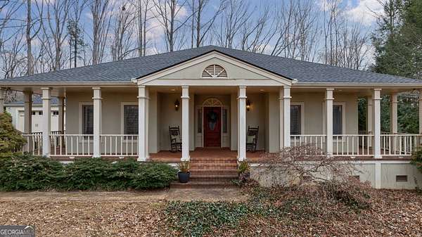 Traditional ranch home with a desirable split-bedroom floorplan in a sought after Clarkesville location. This southern-styled home has a large, open-concept living room and kitchen that are ideal for entertaining guests. The interior of the home is extensively updated to include modern quartz countertops, tiled backsplash, refurbished cabinets and new appliances in the kitchen. Complete interior paint updates with new LVP flooring thoughout. The spacious master suite adjoins the laundry room and overlooks the beautiful pool and wooded back yard. The estate sized lot includes 4.7 acres offering a private setting to enjoy the wrap-around brick porch, back patio, in-ground pool, and rolling foothills of northern Habersham County.
