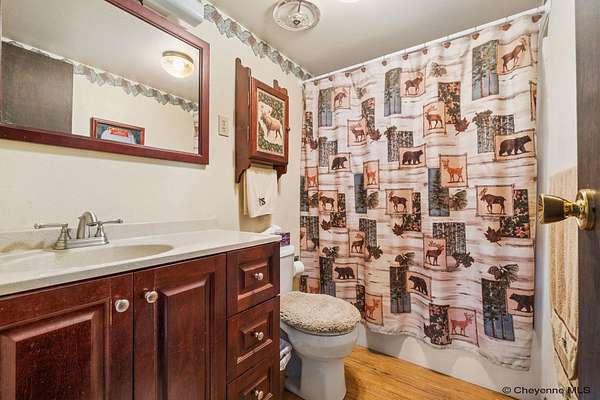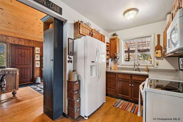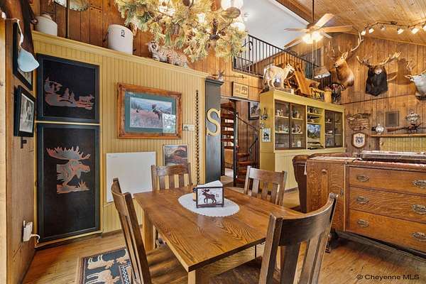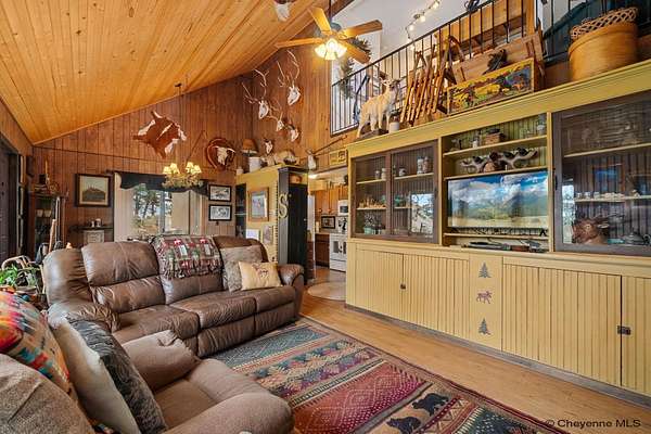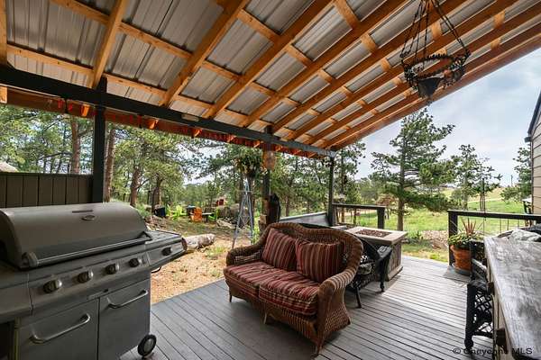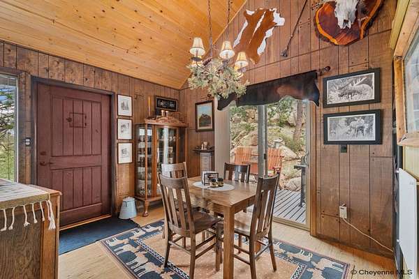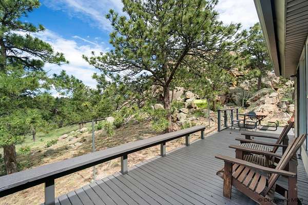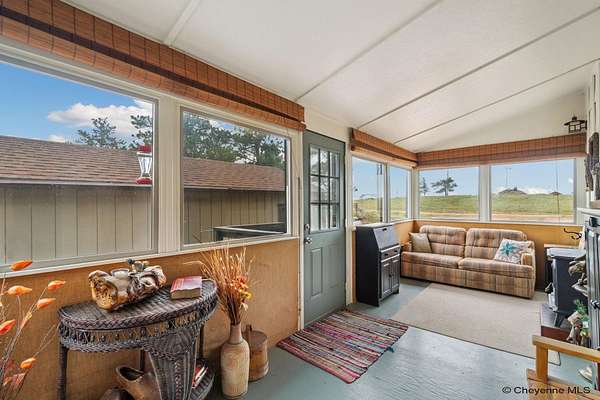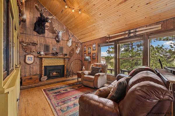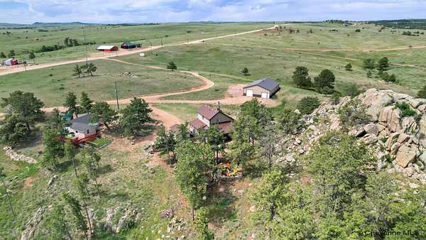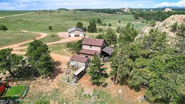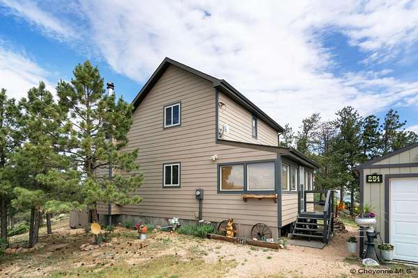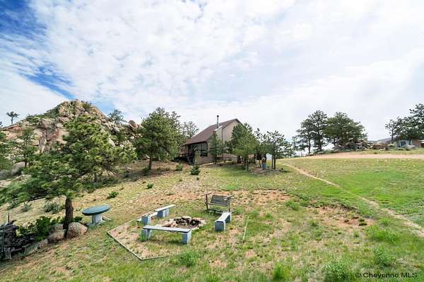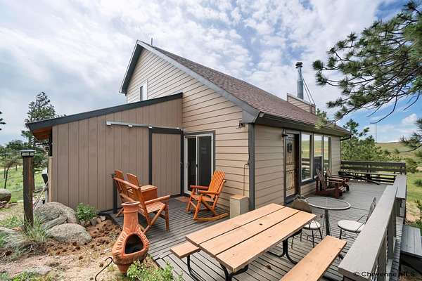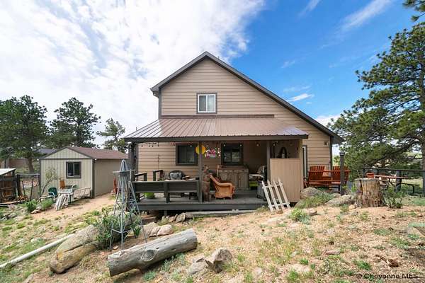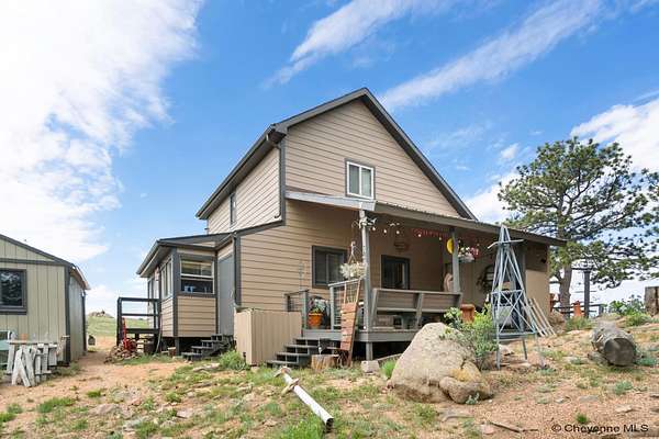 Discover the perfect retreat in Pine Grove Estates, Cheyenne, WY, with this spacious 6-acre property. The lovely 2-bedroom, 2-bath home offers a cozy and comfortable living space, ideal for peaceful mountain living. Outside, you'll find a detached garage, providing ample storage, along with a large outbuilding featuring a workshop that is perfect for hobbies, projects, or additional storage needs. Surrounded by stunning mountain scenery, the property includes picturesque views of trees, rock formations, and charming aspen groves, creating a serene and inspiring environment. Whether you're seeking a private getaway or a place to call home, this property combines natural beauty with functional spaces for all your outdoor and indoor pursuits.