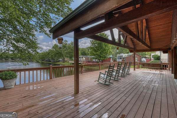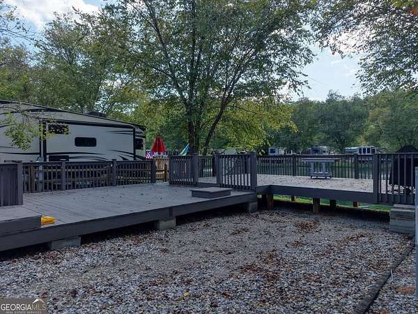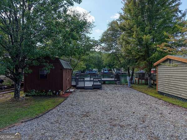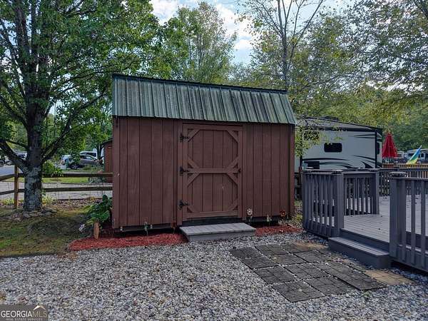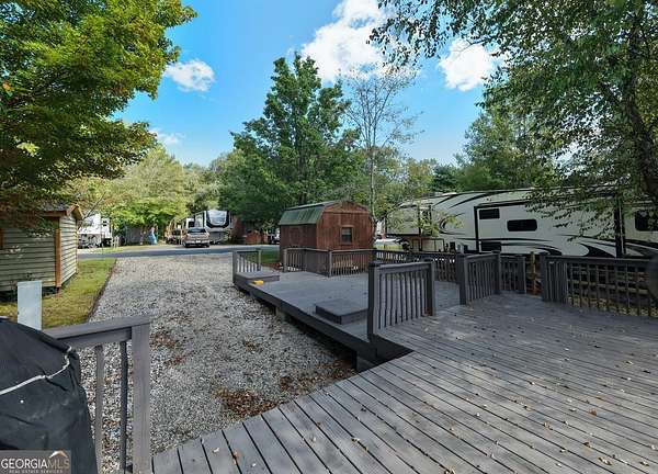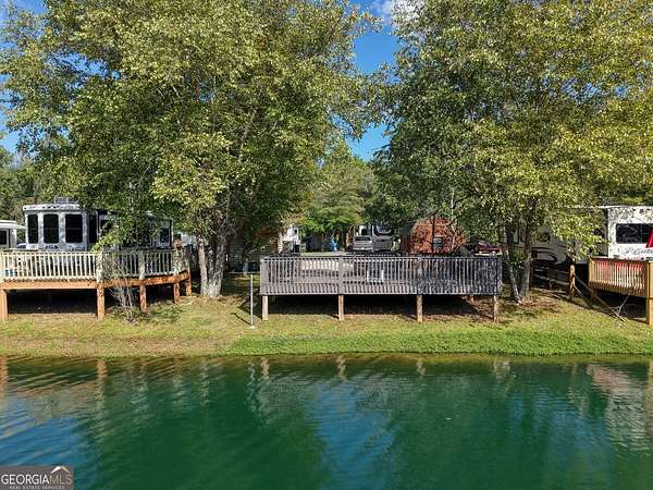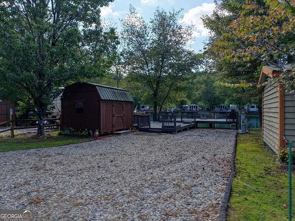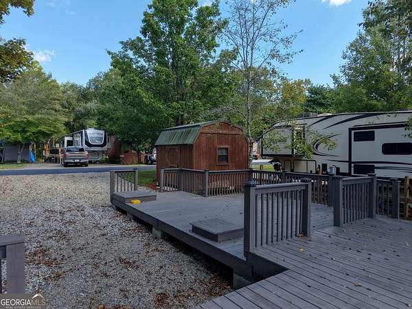 Discover the perfect blend of comfort, convenience, and natural beauty with this RV lot for sale in the highly sought-after Rivers Edge RV Park. Situated on a large pond this lot is perfect for both full-time and part-time living. The property features a large deck for your RV, and a connecting elevated platform deck where you can relax and take in the peaceful pond views or cast a line to fish right from your own private deck. A storage shed is already in place, ready to be customized into a cozy she shed, man cave, office or extra storage space. Shade trees provide a cool retreat during warm summer days. Rivers Edge RV Park is known for its welcoming community and prime location. Whether you enjoy golf cart rides, casual strolls, or friendly gatherings, you'll feel right at home. The community clubhouse offers great amenities including a laundry room, showers, and a spacious rocking chair porch overlooking the lake. The affordable HOA takes care of lawn maintenance, water, sewer, trash, and common areas, making life easy and stress-free. Outdoor enthusiasts will love being near Brasstown Bald (the highest mountain in Georgia), Vogel State Park, and stunning waterfalls like DeSoto Falls and Helton Creek Falls. Hiking trails, local farms with fresh U-Pick produce, and endless mountain adventures are just minutes away. This property is more than just a lot, it's a lifestyle. Bring your RV and start enjoying the mountain life you've been dreaming of.