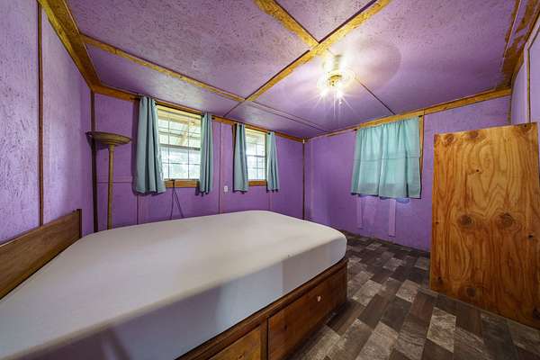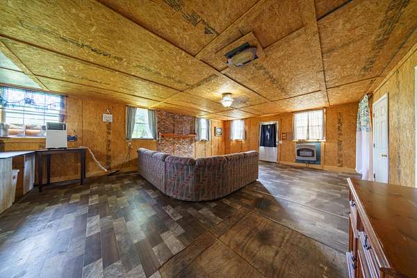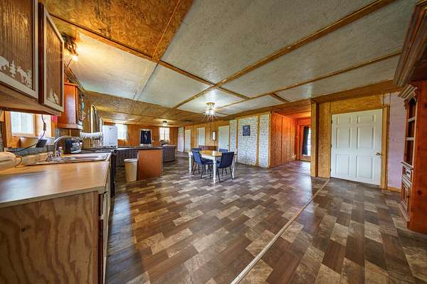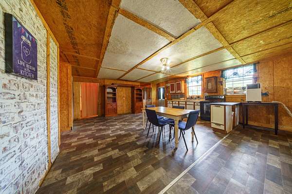 This cozy homestead features a 3-bed, 2-bath rustic cabin--including a roomy laundry area and an oversized walk-in pantry--perfect for fed-up hunters returning from the field. An expansive 800 sq ft covered back porch offers panoramic views of open pastures dotted with frequent sightings of deer, turkey, foxes, and more.