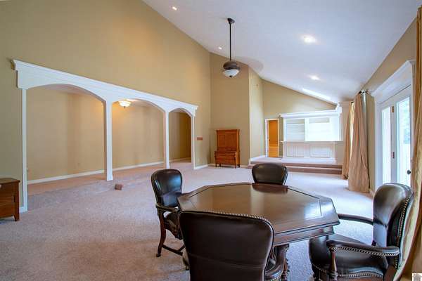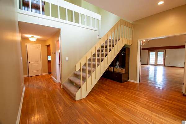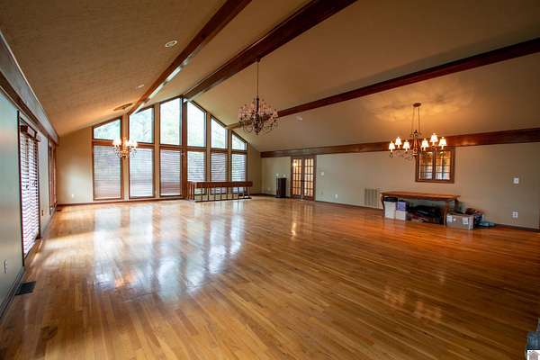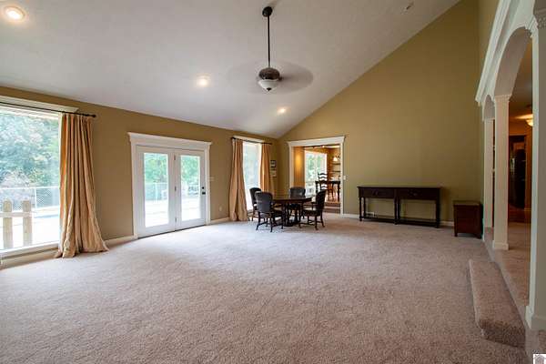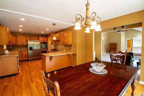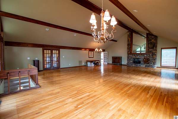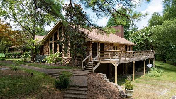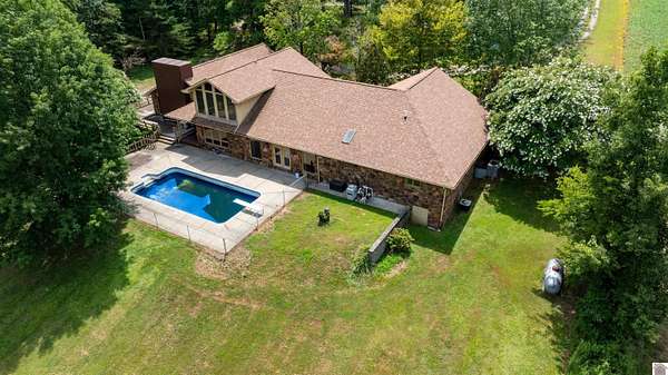 Welcome to a rare find! Situated on a private 5.4-acre setting surrounded by abundant wildlife, this stunning 5-bedroom, 3.5-bath home boasts large open rooms, soaring vaulted ceilings, & oversized windows that flood the home with natural light. The heart of the home is the great room, showcasing gleaming hardwood floors and a massive stone fireplace. The eat-in kitchen is a chef's delight with granite countertops, plentiful cabinetry, stainless steel appliances, & direct access to the wrap-around porch deck- perfect for enjoying the peaceful views. On the main level you'll find the primary suite with a beautiful bathroom plus two other bedrooms each featuring walk in closets and a shared bathroom. Outside you'll enjoy the in-ground pool & a large pond stocked with bass & bluegill. New upgrades include: 4-car garage with new insulated doors,new carpet, two new HVAC's, & new water heater. This is more than a home, this a lifestyle!