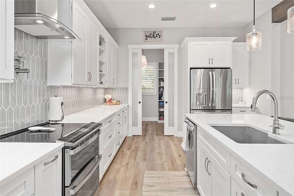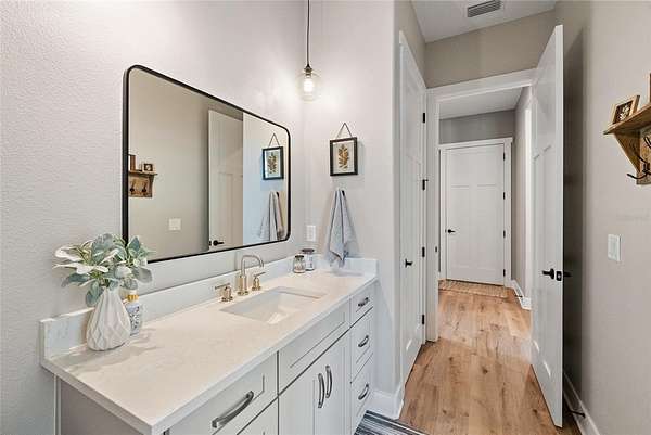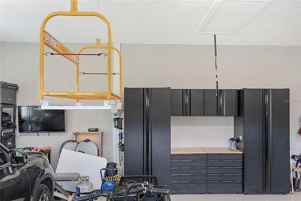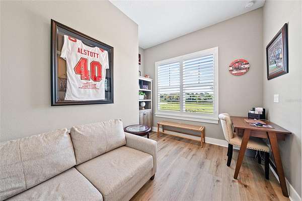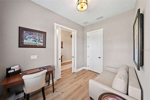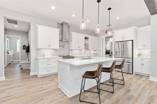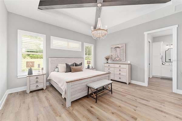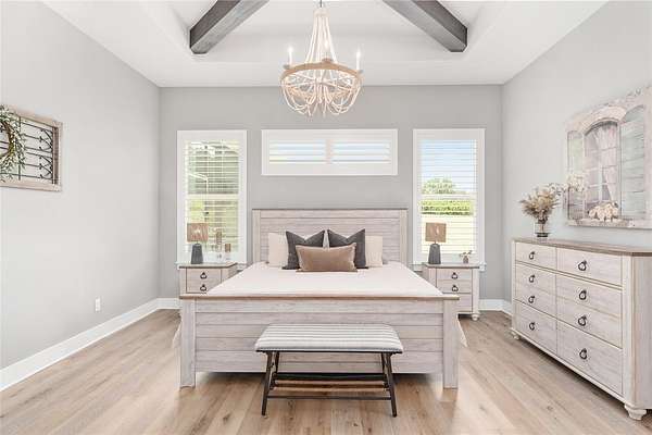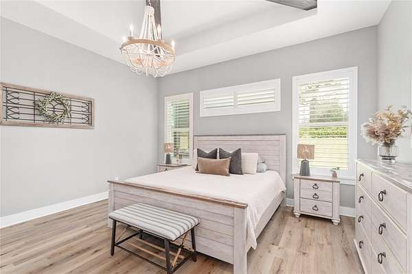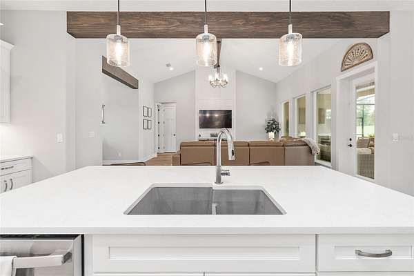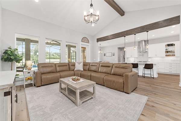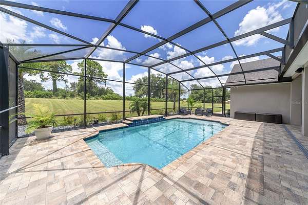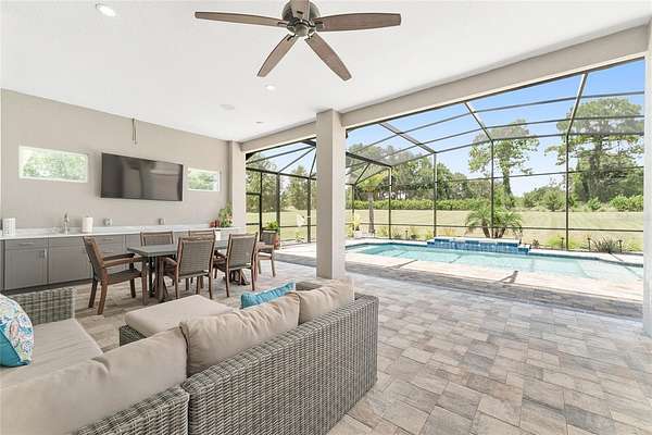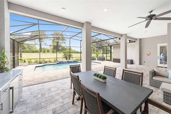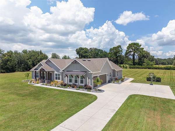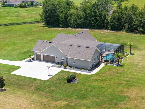 EXPERIENCE LUXURY LIVING in this EXQUISITE, CUSTOM BUILT, ESTATE POOL HOME nestled on 3.86 fenced acres in the EXCLUSIVE gated community of Sumter Crossing! Designed with exceptional craftsmanship and attention to detail, this magnificent property offers privacy, space, and a serene setting perfect for refined living. Stately wood pillars frame the inviting front entrance of this craftsman-style home showcasing metal, wood, and stone exterior accents. A quaint front porch and generous foyer welcome you in to the bright open floor plan that effortlessly connects the kitchen, dining, and living spaces, making it ideal for both everyday living and entertaining. Soaring 11-foot ceilings accented by custom wood beams add to the grandeur of this exquisite space. Whether you're hosting gatherings or enjoying a quiet evening at home, this open-concept design offers the perfect blend of functionality and freedom. For added convenience a home office with built-in closet is located just off of the foyer. The stunning custom kitchen is the heart of the home, combining high-end finishes with thoughtful functionality. Crisp white cabinetry paired with sleek quartz countertops, creates a clean, timeless look. The spacious center island, complete with a built-in sink, offers additional prep space and seating-perfect for casual meals. Cooking enthusiasts will love the double oven, designer hood, and wall-mounted pot filler, making meal prep a breeze. A stylish tile backsplash and under-cabinet lighting add both elegance and practicality. Just off the main kitchen, a butler's pantry provides extra storage and prep space. This kitchen is truly a chef's dream with no detail overlooked! From the living room, an elegant French door invites you into the INCREDIBLE OUTDOOR OASIS of the lanai and POOL area! This fabulous space features paver floors, and a summer kitchen with sink and mini-refrigerator -- perfect for effortless entertaining. Soak up the sun on the spacious deck, dive into the refreshing pool, or simply sit under the covered lanai and enjoy the beauty of this amazing backyard paradise! Retreat back indoors to the luxurious primary suite. The spacious bedroom is a showstopper, featuring an elegant tray ceiling adorned with crossed wood beams. It's custom walk-in closet offers boutique-style storage and center island. The spa-inspired en-suite bathroom boasts white cabinetry, quartz tops, double sinks, and two built-in linen closets Relax in the freestanding soaking tub or indulge in the double-entry Roman-style walk-in shower, clad in Carrera tile, and boasting dual shower heads for a high-end experience. A split floor plan offers three additional bedrooms and a second bathroom. Bedroom 2 features a built-in closet while bedrooms 3 and 4 each boast custom walk-in closets.The second bathroom showcases white cabinetry, quartz tops, double sinks, and tiled tub/shower combination. A convenient mud room is located just off of the kitchen. There's also an additional cabana-style half-bath -easily accessed from the pool and lanai. The centrally-located laundry room boasts a built-in utility sink and plethora of additional cabinetry with quartz tops. Completing the package is a 820sf 3-car garage! This fantastic space showcases epoxied floors, built-in workbench with storage cabinets, and Magic Attic Lift! PLEASE WATCH OUR VIDEO of this EXCEPTIONAL PROPERTY, and CALL TODAY to schedule your private showing or virtual tour!