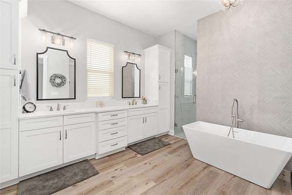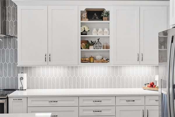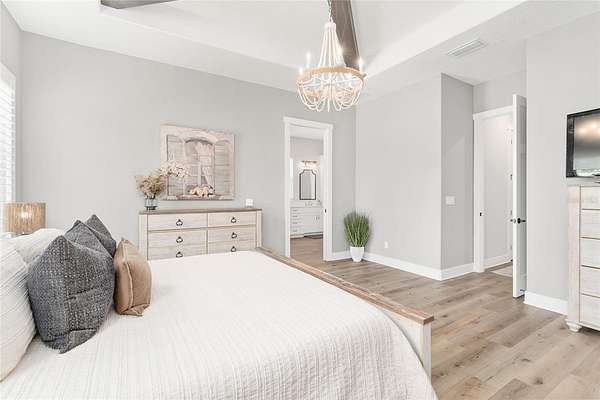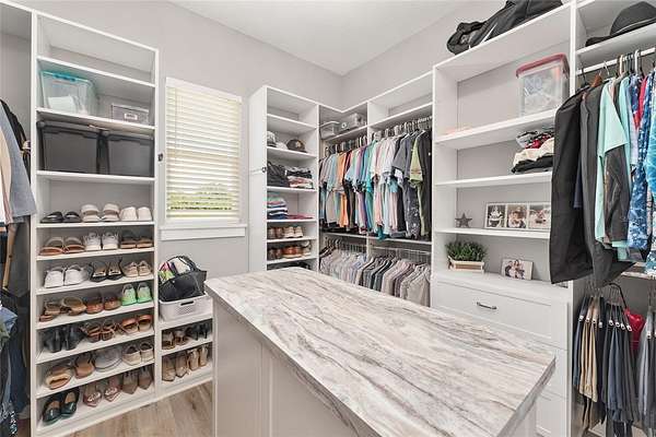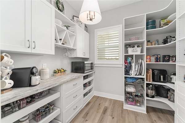- Ceiling Fans(s), Eat-In Kitchen, High Ceilings, Living Room/Dining Room Combo, Open Floorplan, Primary Bedroom Main Floor, Solid Surface Counters, Split Bedroom, Tray Ceiling(s), Vaulted Ceiling(s), Walk-In Closet(s)