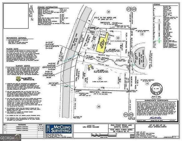 Take Roswell Rd and Holly Springs Rd to Stoney Brook Ln. Turn left on Stoney Brook Ln, Lot will be on left
