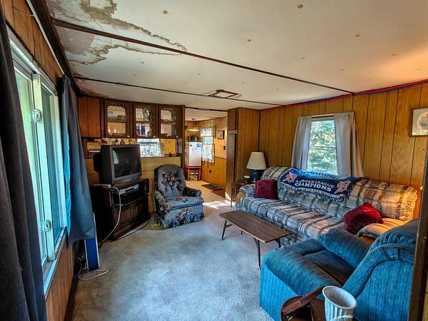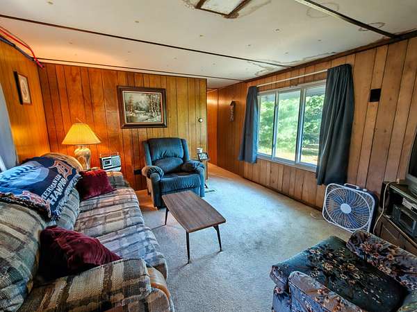 Affordable Up North living with this single-wide mobile home nestled on a wooded, private 2 acres near Lily Lake! Updates include PEX plumbing ran through the interior for added peace of mind during cold Michigan winters, as well as the electric panel being updated in 2015. Picture window in the living room overlooks the large backyard where you can make lasting memories around the bonfire. This home is tucked off the road, nestled in the trees, with a long circle driveway. Three lots, one with an older slab foundation, for your future garage to store your toys! Located near private subdivision access to a sandy beach on All-Sports Lily Lake and close to the Lily Lake boat launch, this property also puts you near Lake George, Shingle Lake, and just about 8 miles from a seasonal road leading into the Leota ORV trail system. Harrison is home for those who love to be outdoors, with countless lakes, state land, public hunting land, and trails. You will never run out of places to explore, no matter the season! Conveniently located off M-61, this location offers ease of access to and from. Centrally located, being only 2-hours way from the Upper Peninsula, Silver Lake Dunes, Lake Michigan, and Lake Huron Access. The home is in need of some TLC and a new roof, making it an opportunity for the right buyer to bring their vision to life. Cash sales only - come see the potential and make it yours!