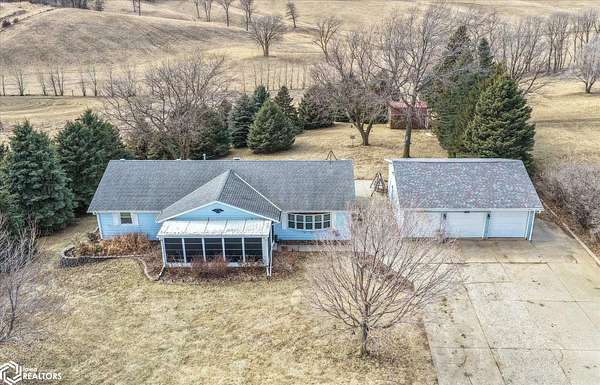 Sprawling ranch-style acreage just outside Denison, tucked right off a hard-surface road w/room to breathe & space for all your hobbies. This home offers an incredible amount of sq. footage you truly have to see to believe! The main level features 5 BR's a full bath, plus a primary suite w/private bath. Downstairs you'll find a nonconforming BR, an additional BA, laundry, & tons of storage & flexible living space. Start your mornings in the 3-season sunroom-coffee in hand-watching the sunrise. Outside, enjoy 5.65 acres w/a detached 3-car garage & a 30x40 utility building (built in 2022)perfect for projects, toys, tools, & tinkering. All appliances stay, including W/D. If you need space, this one brings it-house, garage, & buildings... you'll have a spot for everything & then some!