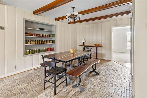 Charming one level home situated on 35 acres of peaceful countryside with abundant wildlife, this property offers the perfect balance of wooded privacy and open pastureland. Located less than 2 minutes from Interstate 65,this almost 2100 square foot 3-bedroom, 3-bathroom home was designed for comfort and connection to the outdoors. A spacious pavilion invites gatherings under the open sky, while a well-equipped 50'x38' barn/workshop and sturdy 21'x40' pole barn provide space for hobbies, storage, or agricultural needs. A sparkling stocked pond adds beauty and tranquility, creating a serene backdrop for both relaxation and recreation. Whether you dream of a private retreat, a hobby farm, or a place to host unforgettable events, this property offers natural beauty and versatile amenities in a setting you'll never want to leave.