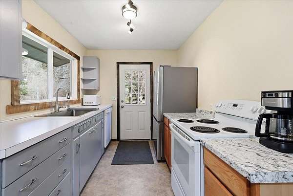 Private, versatile & packed with potential, this 9.7 acre property offers the best of country living with a rare blend of usable land & private, treed acreage with walking and ATV trails. For nature enthusiasts it is ideally located within 30 mins to 5 lakes making this property perfect for those who enjoy being outdoors. This 1,664 sq ft, 3 bedrm,1 bath home features a functional layout, lots of natural light, fiber optic internet & is ready for your personal touch. Stay comfortable year-round with mini splits & a wood stove. The property is well-equipped with a 24x36 shop with power & a wood stove, 3-space carport providing ample room for vehicles, storage & toys. Enjoy peaceful mornings and relaxing evenings from the covered, screened porch overlooking the serene setting, complete with a year-round creek with valuable certified water rights. Whether you're looking for privacy or the opportunity to create your own country retreat, this property offers flexibility, functionality & lifestyle all in one.