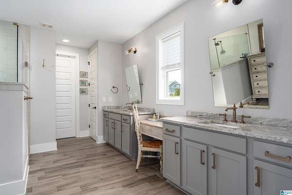 - Double Shower, Garden Tub, Linen Closet, Recess Lighting, Safe Room/Storm Cellar, Separate Shower, Separate Vanities, Shared Bath, Tub/Shower Combo, Walk-In Closets
