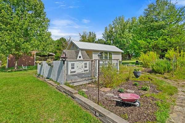 1,040 SqFt Main house with 708 SqFt guest space offers a total of 1,748 SqFt of living space!! Welcome to your country home on 12 acres in East Texas. This home has been completely updated, keeping its country charm with the addition of modern luxuries. You will feel right at home as you walk into the bright and airy living room with can lighting, crown molding and plantation shutters. The entire home has luxury and long lasting wood look tile flooring. Prep your family meal in the kitchen dining combo with leathered granite countertops, wine cooler fridge and large picture window overlooking one of the many gardens. The 2 bedrooms share a custom bathroom complete with an antique cast iron claw foot tub and shower combo. In addition to the main home this property boasts an additional living quarters above the 3 car garage. This 708square feet flex space includes a living room, large bedroom, and bathroom with separate shower, dual vanity and jetted soaking tub. Other buildings on the property include a 31'x 54' storage barn, custom matching chicken coop and greenhouse or art studio. A well house keeps the extensive 2 sprinkler systems that cover both the vast yard and gardens. In addition to flower gardens the property has blackberry and blueberry bushes, grapes, figs, and fresh herb gardens. Entire property is fenced and cross fenced. Call to schedule your showing today!