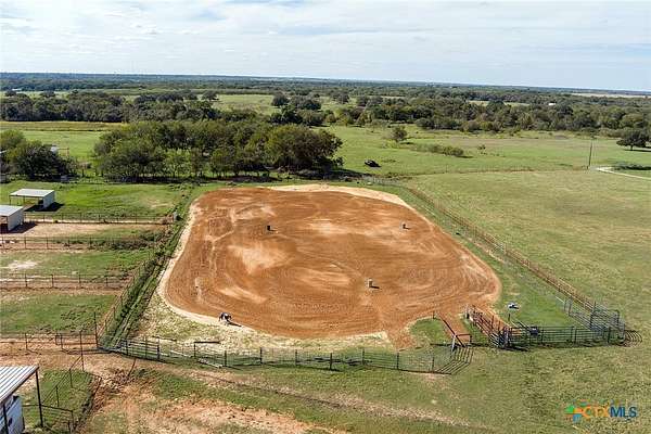 Great Horse property close to town. Custom built 3/2 Rock home sits on top of hill overlooking 19 plus acres improved grasses, horse facilities including 4 paddocks with runs, 3 stalls inside of big barn, tack room, workshop, covered parking for trailers, lighting, electric hookups for RVs, riding arena area and 6 horse walker all included. Custom home also has spacious rooms, living with rock fireplace, Kitchen/living/dining combo, bonus room for office and nice 2 car attached carport. Beautiful clean property with improved grasses and really good sandy loam. All only 5 miles to Lockhart and easy access to Hwy 183 and 130 toll road.