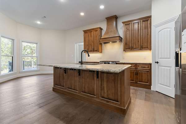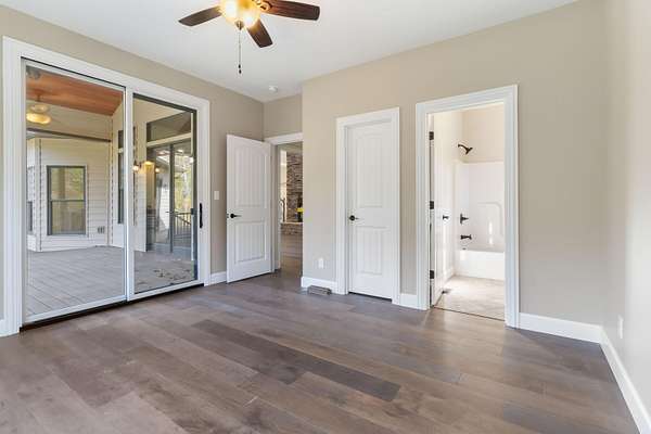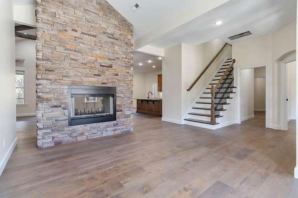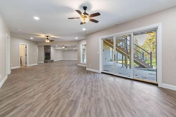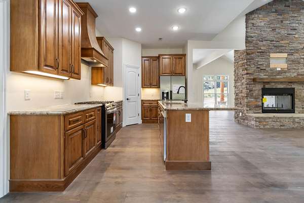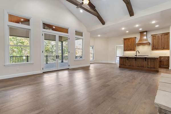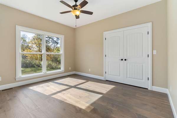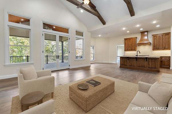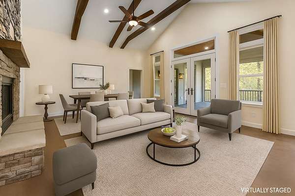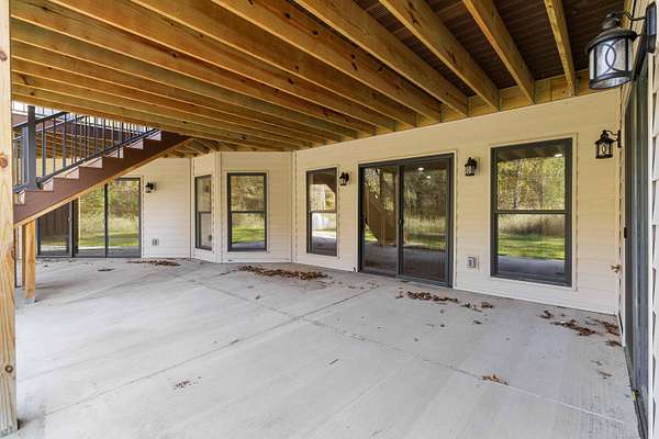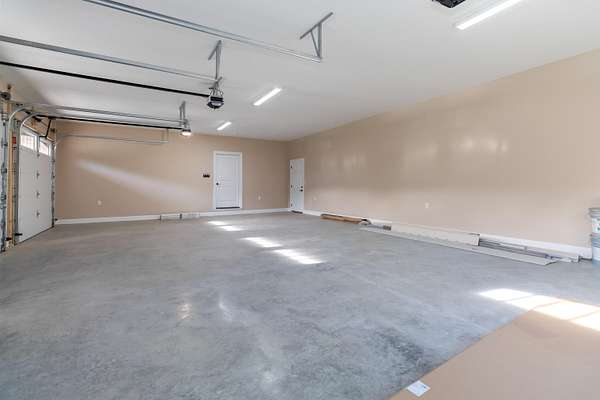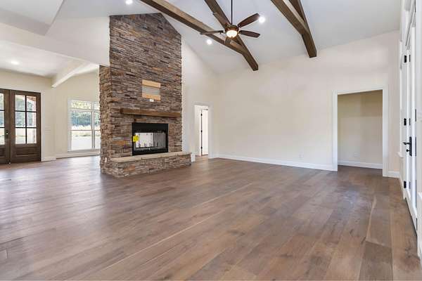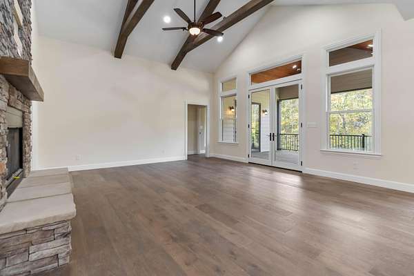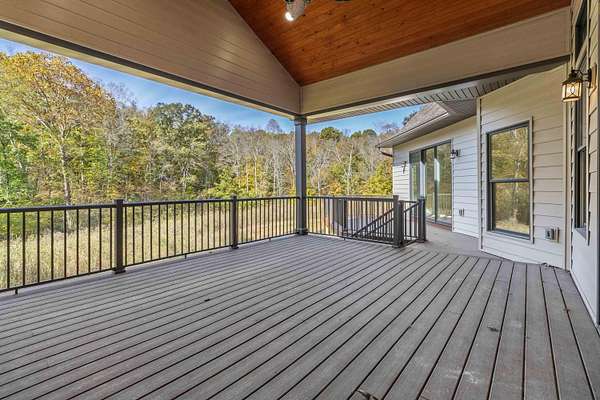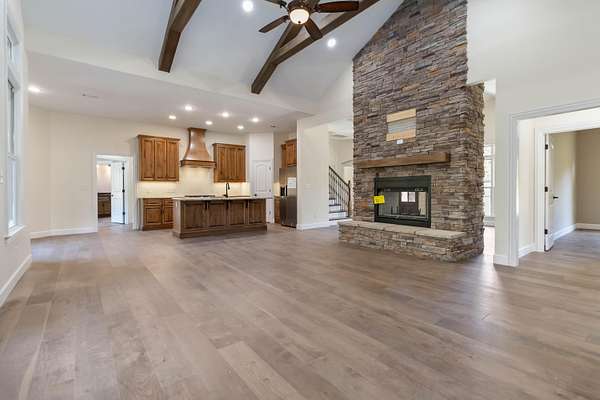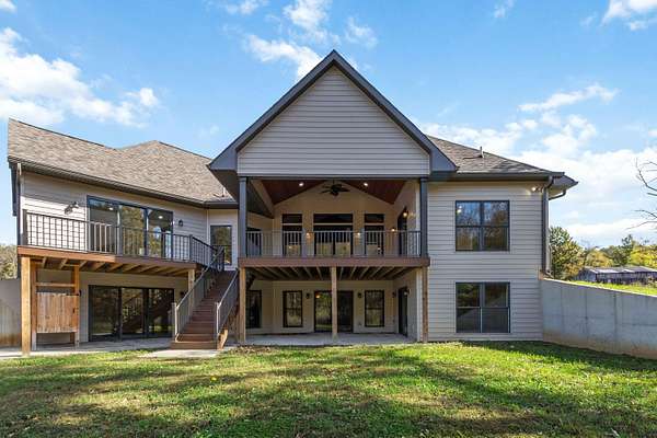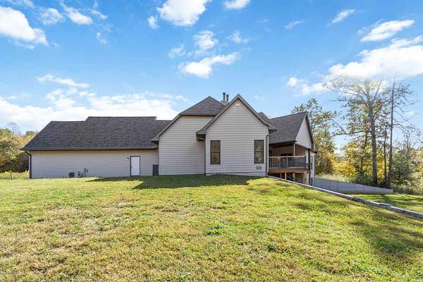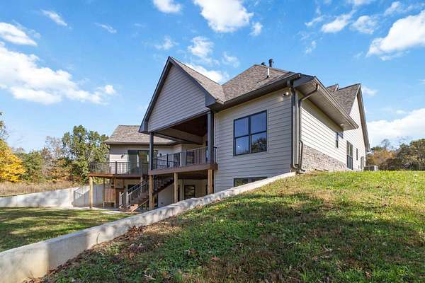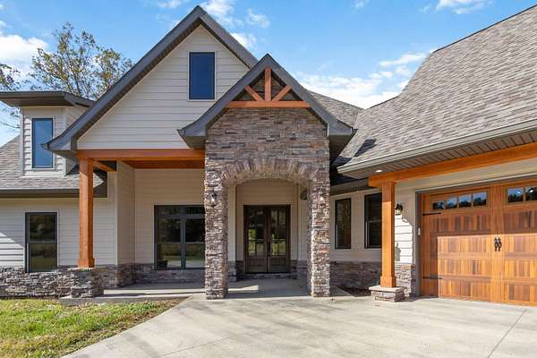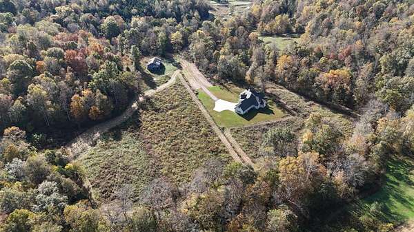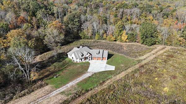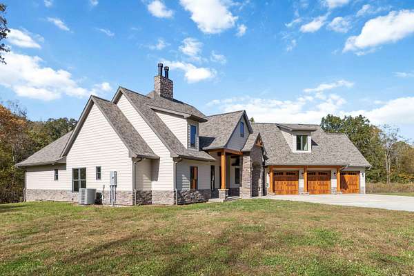 Discover modern craftsmanship and timeless beauty in this brand-new custom home set on 37 acres of serene Kentucky countryside. From the striking stone facade and timber accents to the three-car garage with wood-style doors, every detail has been thoughtfully designed. Step inside to find an open-concept layout filled with natural light, featuring vaulted ceilings with exposed beams, a grand floor-to-ceiling stone fireplace, and rich hardwood flooring throughout. The chef's kitchen is both functional and beautiful, showcasing granite countertops, custom cabinetry, a large center island, and premium fixtures. The primary suite provides a spa-like retreat with heated tile floors, dual vanities, and a luxurious walk-in tile shower. Upstairs, the bonus room offers extra versatility-perfect for a home office, guest suite, or hobby space. The home is designed for comfort and energy efficiency, featuring 16-SEER systems for the first and second floors and an 18-SEER system for the bonus room, ensuring year-round climate control while keeping energy costs low. The walkout basement adds even more living space, complete with a second stone fireplace and open recreation area ready for a bar, gym, or home theater. Step outside to the covered back deck or lower patio and enjoy panoramic views of your 37 private acres - ideal for trails, wildlife watching, hunting or simply enjoying the peaceful outdoors.