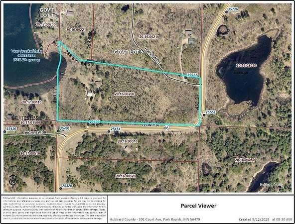 From 34/71 in Park Rapids, East on 34 to Nevis. Left on County 2 (Bunyan Trails Drive). Follow to County 86 to property.