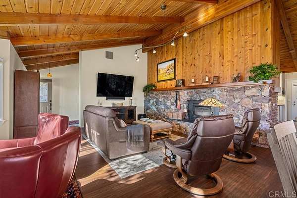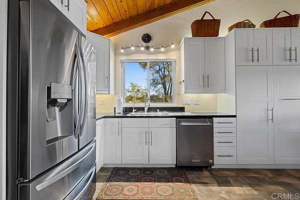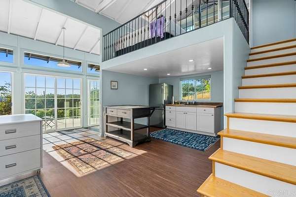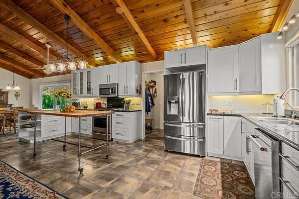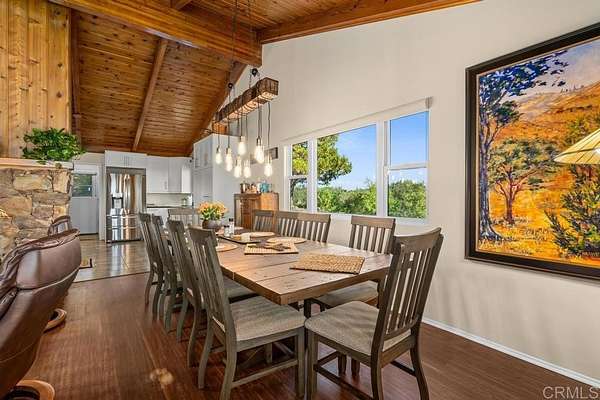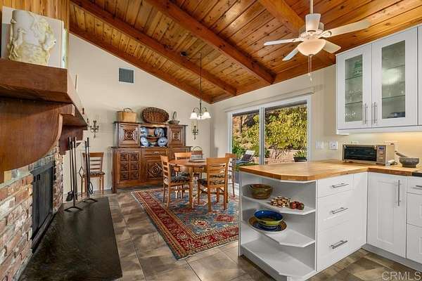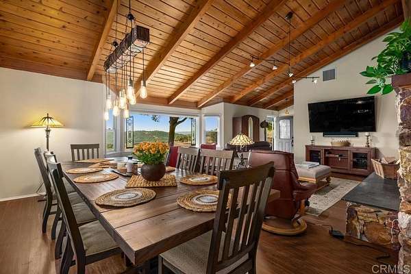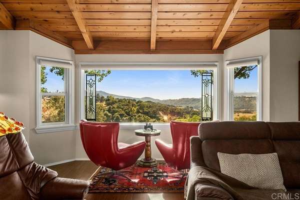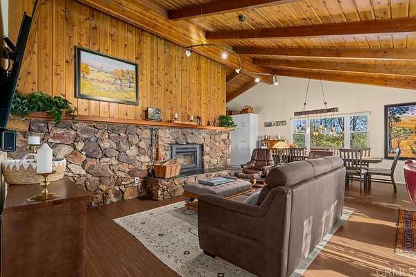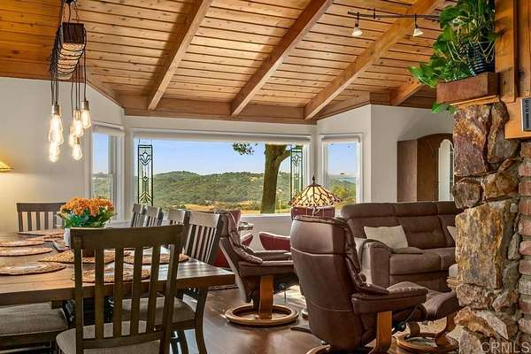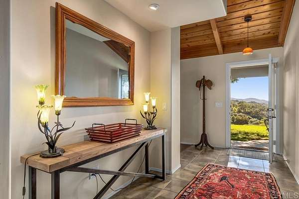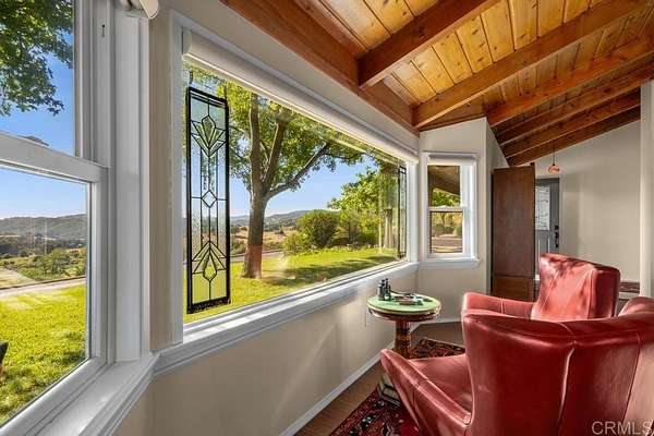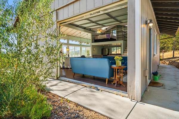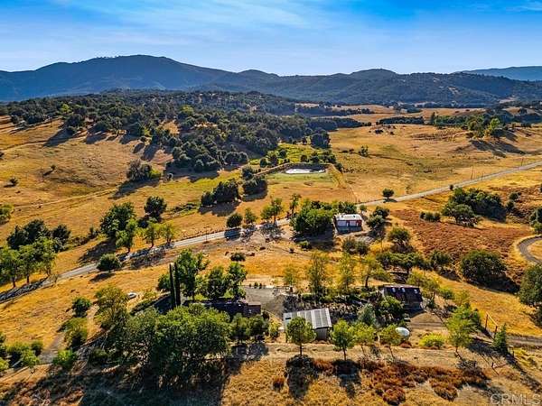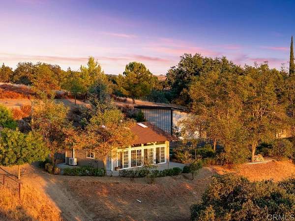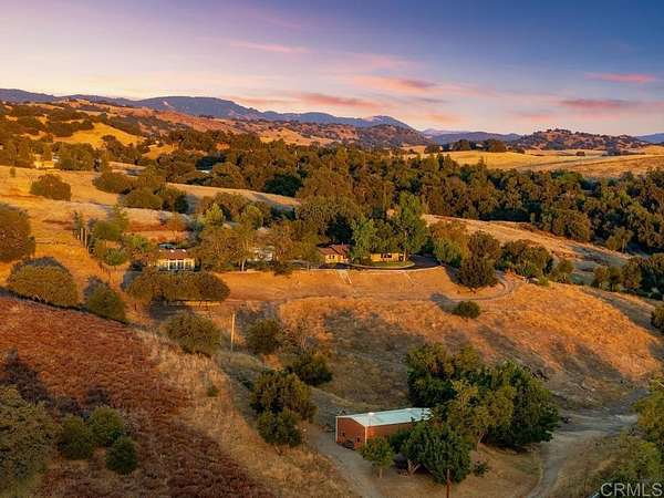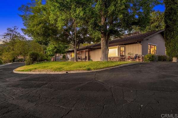 Oak Mesa Ranchette, a rare and remarkable offering set within the highly exclusive and scenic enclave of Mesa Grande, one of San Diego County’s most treasured backcountry communities. Perched atop its own private plateau and surrounded by expansive cattle ranches and pristine oak studded forest, this exceptional 11.82 acre property embodies the essence of country living, where privacy, beauty, and open space define the lifestyle. -Located along a picturesque stretch of Mesa Grande Road, one of the region’s most scenic highways, this property offers a rare blend of privacy and easy access in the San Diego mountain backcountry. Surrounded by rolling landscapes, mature oaks, and sweeping views, the setting is both peaceful and inspiring, with quiet mornings and beautiful sunset skies. -A paved driveway leads to an expansive thoughtfully maintained ranchette, featuring xeriscape landscaping, vibrant flowering plants, and a lush lawn that complements the natural surroundings. -The beautifully remodeled nearly 2,000 square foot residence offers 3 bedrooms and 2 baths, designed to capture natural light, panoramic views, and purposeful comfort. A flagstone patio entry welcomes you into sunlit interiors, where large windows frame breathtaking westerly vistas. Vaulted wood beam ceilings and an open living area create a sense of volume and warmth, anchored by a striking rock fireplace with a blower insert, ideal for cozy evenings in the mountains. The kitchen blends charm and functionality with ample cabinetry, generous workspace, and its own brick fireplace that adds character and warmth. Just beyond the kitchen, a covered patio provides a peaceful outdoor living space, complete with decorative rock retaining walls and mature plantings, ideal for relaxing, entertaining, or enjoying the natural surroundings with family and pets. The primary bedroom features a beautiful view window and an ensuite bath. Two comfortable secondary bedrooms and a shared bath provide flexible space for guests, family, or a home office. -Additional features include recessed lighting, dual-pane windows with honeycomb shades, updated flooring, and central heating and air. The home also offers a mudroom and an oversized laundry utility space designed for everyday ease. -Beyond the main residence, the property unfolds into a versatile compound. A detached, fully remodeled artist studio/guest retreat offers a kitchenette, full bath, loft sleeping area, skylights, and an entire wall of sliding glass doors that invite in abundant natural light. This one-of-a-kind space is ideal for creative pursuits, guests, or a private sanctuary. -A substantial 1,500+/- square foot metal building provides exceptional flexibility. One side functions as a large workshop, while the other has been converted into a fully renovated apartment with a full kitchen, bath, loft, and storage, perfect for extended family or caretaker quarters. The land itself is both usable and beautiful, fully fenced with multiple gated entries, dotted with fruit trees, and thoughtfully improved for everyday living. -A newly well-constructed metal building is ample room for equipment, storage, or workshop use. -A private well system, supported by a newer 10,000-gallon water storage tank, ensures reliable water, while owned solar enhances efficiency and sustainability. -Oak Mesa Ranchette is more than a property, it is a lifestyle. Defined by wide open spaces and the quiet beauty of the surrounding hills, life here moves at a different pace, grounded in nature, privacy, and the enduring appeal of the beautiful backcountry. * The adjacent ranchland is also available for purchase, offering approximately 169± acres of beautiful rolling pasture. This neighboring parcel features a high producing water well, an agricultural building with an apartment, and expansive terrain that complements the residential offering and presents a rare opportunity to expand or create a larger, cohesive ranch estate.