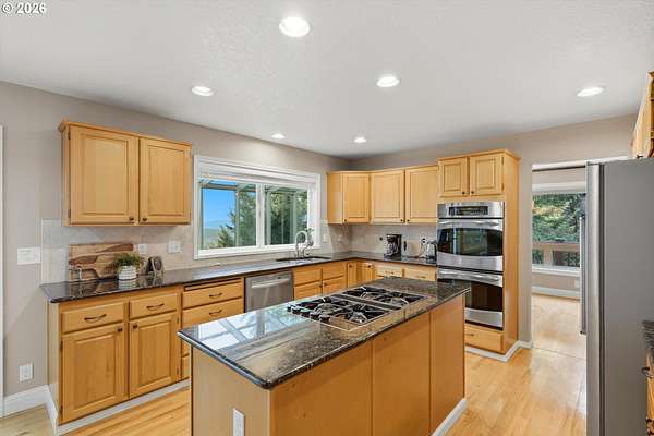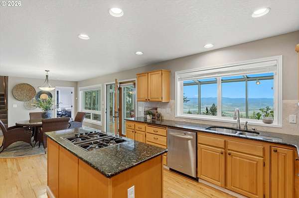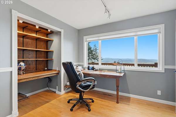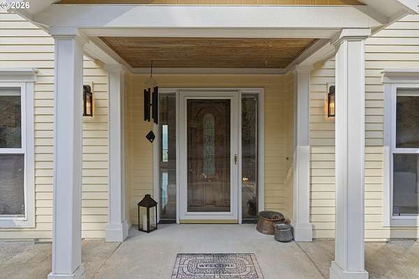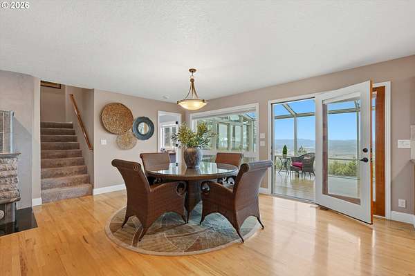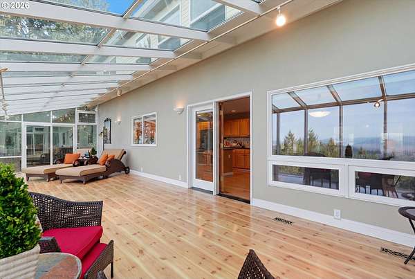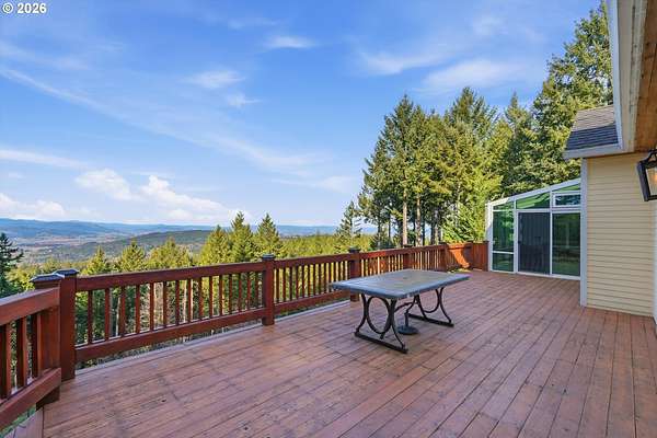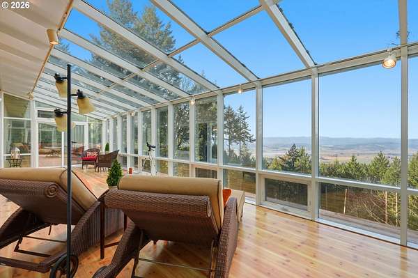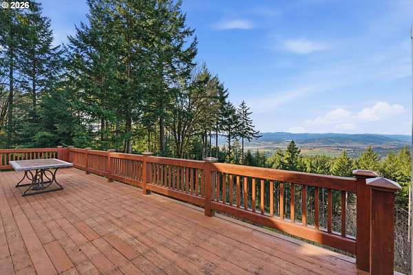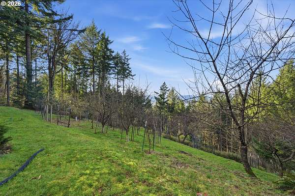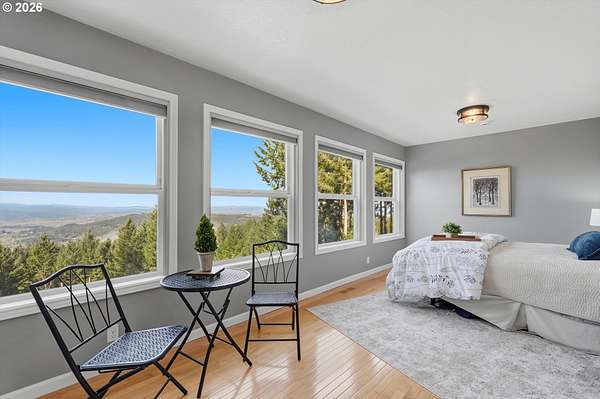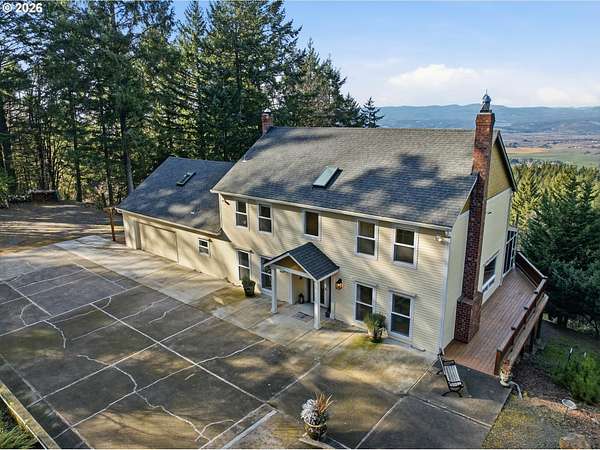 Bald Peak perfection with jaw-dropping northwest views and unforgettable western sunsets from numerous rooms and extended sunroom. Tucked behind a gated entry on 7.29 acres, this custom home is set with views of the Willamette Valley and a panorama stretching toward Forest Grove, Hagg Lake, Chehalem Park and the Cascade/Coast Range. Inside, enjoy gleaming hardwoods, formal living and dining, a private office, a great room anchored by a cozy wood-burning fireplace, and a sunroom that stretches for added living space. The chef's kitchen offers granite counters, cook island, high-end appliances and generous prep space-built for both entertaining and everyday living. An inviting family room and separate media/game room create ideal spaces to gather, unwind, and host. Upstairs you'll find a view-filled primary suite, additional bedrooms, and a flexible third-floor bonus area-perfect as an art studio, larger office, fun retreat, or future hideaway. The showstopper is the finished glass sunroom leading to expansive decks-step outside, breathe in the quiet, and watch the sky light up at sunset. Outside is a true lifestyle property: a hand-built trail system to the lower and side property lines, Italian-inspired rock walls, and a replanted landscape designed for year-round color. Enjoy your own orchard with cherry, peach, plum, fig, and apple trees, plus beautiful stands of Douglas fir, hemlock, and cedar. This property has room to explore building a shop or ADU (buyer to verify). This is a very rare combination of privacy, views, and polished acreage-nothing else quite like it.