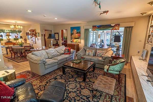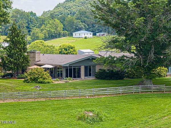 Offered for the first time by the original family, this custom-built mid-century modern home rests on a knoll overlooking 29 acres of rolling pasture, creek, and pond. Designed to embrace the natural setting, the home features expansive windows, sliding glass doors, patios, and decks that frame serene views. The enclosed porch, accessed from the living, dining, and family rooms, opens to a stone terrace ideal for sunset gatherings. Inside, the home offers spacious bedrooms with abundant closets, including a primary suite with private patio. Classic tiled baths feature built-in vanities, double sinks, and original details. The living room boasts a fireplace and space for a piano, while the dining room is accented by distinctive glass walls. An updated kitchen with breakfast area and built-ins flows into the family room with fireplace and bookcase. A pantry, laundry, office, half bath, and oversized 33' garage add convenience. The lower level provides a recreation room with kitchenette, half bath, and storage. Mature trees, fencing, and landscaped lawns enhance the setting. This property includes two parcels: the main home on 10 acres plus 19 adjoining acres. A second brick 4-BR guest home #25355 on Lee Hwy. (1,344 sq ft over full basement) is also included and currently leased month-to-month. Outbuildings include an older barn, corn crib, and shed. The land, originally a dairy farm, adjoins a separate 36.32-acre tract (also available) with two additional homes and frontage on Lee Hwy beside the hospital, offering development potential. Together, these properties present a rare opportunity with multiple homes, scenic acreage, and investment options. This listing is for the main home, the guest home and two tax Map Parcels totaling 29 acres. The other listing #9985918 containing 36.32 acres is being offered separately or your buyer can buy both properties with a total of 4 homes, barns and approximately 65 acres for $3,100,000. Call agent for more info..Second Tax Map 106C-1-25.he CRS data does not match the GIS information, the 1,344 sq ft brick home on Lee Hwy is on the 10 acre tract with the main residence, not on the 19 acre tract as shown on Washington County GIS. Buyers and Buyer's agents should verify all information.