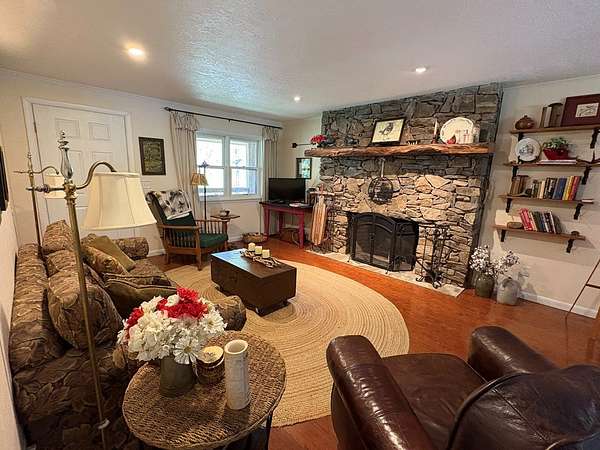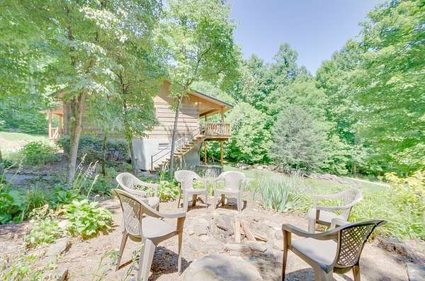 Private 2 Bedroom 2 Bath cabin situated on 2.91, acres on Coopers Creek. When you walk in you are greeted with an open floor plan, wood burning stone fireplace, and hardwood floors. On the main level you will find the primary bedroom with a large walk-in closet and ensuite bath, a spacious guest bedroom and bath and open kitchen and living room. The unfinished basement features an additional 600-800sq. ft. Currently used as tv/game room. There is just as much outdoor space to enjoy with a covered porch off the family room, stone patio walkway and a patio off the lower entrance. Outside you can enjoy one of two firepits and listen to the sounds of the creek. This house is move in ready! NO DRIVE BYS