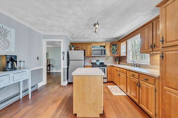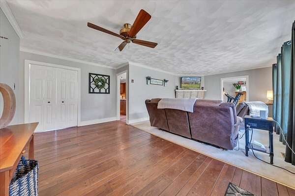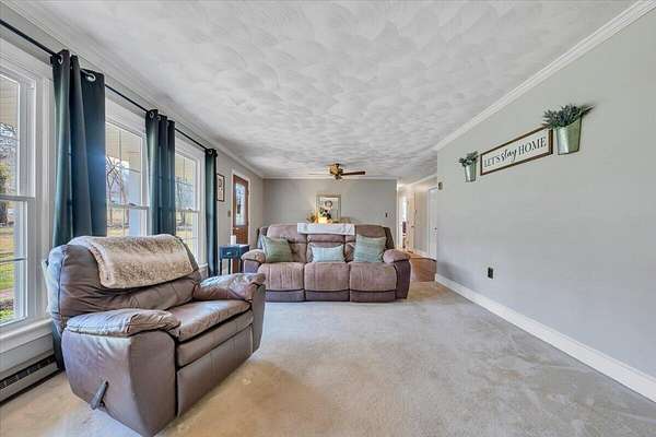 Rare find in Buchanan! 5.45-acre country retreat with mountain views and a peaceful stream. This 3BR, 1.5BA home offers hardwood floors, brick accents, and flexible living space - one level living. Current closet can be converted into a third bedroom. Enjoy outdoor living with a covered front porch, covered rear patio, and open patio. Major updates include HVAC (2024), roof (2019), windows, water softener, and pressure tank (2019). Woodstove, carport, shed, and kitchen appliances convey. Convenient to Jefferson National Forest and minutes to downtown Buchanan! This is a must see to appreciate the view and all this property has to offer.