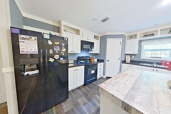 Escape to tranquility with this charming home situated on 2.76 acres of peaceful countryside. With 4 spacious bedrooms and 2 full baths, this home boasts an open floor plan that's perfect for family living. The heart of the home, the kitchen, features a functional island with additional storage, a walk-in pantry, and sleek black appliances. The generous primary suite offers a private retreat with an ensuite bath that includes both a separate shower and soaking tub, plus a walk-in closet. On the opposite side of the home, you'll find 3 additional bedrooms, a full bath, and a large laundry room for added convenience. The backyard is fully fenced, providing a safe space for kids and pets to play and explore. With plenty of room to expand and make it your own, this property offers endless possibilities. Don't miss out on the opportunity to experience country living. Call today to schedule a tour!