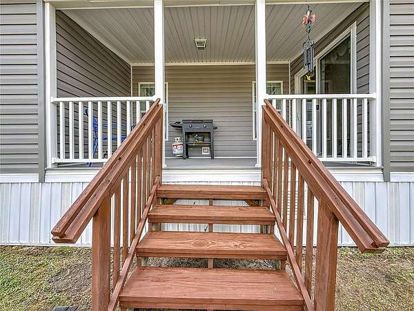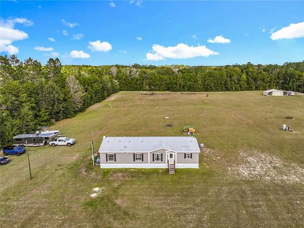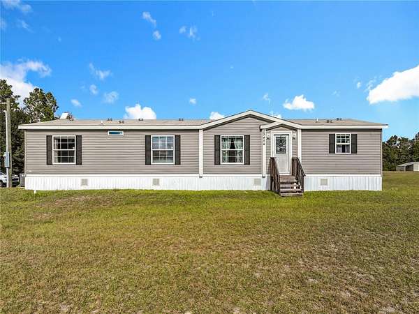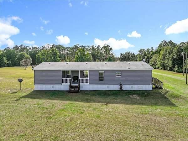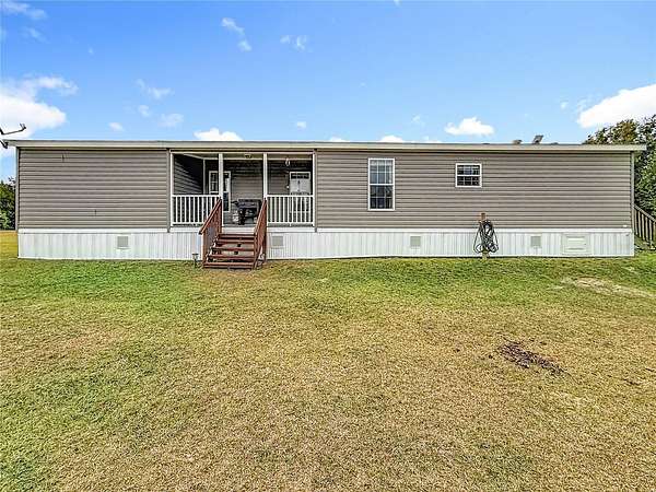 5 Acres waiting for you! This is your chance to live on 5 acres and make it your own--plenty of room to add a workshop or garage. NO HOA! You can bring your toys! Plenty of space to park a boat, an RV, or any other items you might have. You can have all that room and still have room to have a lovely garden. Horses, goats, and any of your furry friends will enjoy the space. The chicken coop is ready for your chickens. Never go without eggs! This home is quiet and very comfortable. It has been well cared for. The skirting is less than a year old and is made of solid material, with a door that you can lock. The home features an eat-in island in the kitchen and room for a dining table. A spacious closet-pantry in the kitchen for your convenience, along with an indoor laundry room, will make life easy. The main bathroom design has a separate soaking bathtub and a large shower. A large walk-in closet will hold all your clothes neatly. Imagine sipping your favorite beverage on your back porch while enjoying nature. Approximately 30 minutes to Gainesville. Minutes from Champions Park. Easy to get to yet private. Don't wait, see for yourself, and start living your dream of owning land.