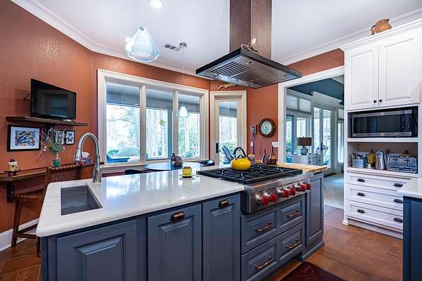 Incredible LAKEFRONT HOME with so many awesome upgrades & features! Soaring windows & doors offering lake views from every room on back of home. Foyer entrance, lg Dining Room, Living Room w/fireplace incl. gas logs, Great Room w/stack stoned fireplace incl. gas logs, built-in entertainment center & bookshelves, Gormet Kitchen w/3 island, 6 burner Wolf gas stovetop, 2 KitchenAid dishwashers, KitchenAid double wall oven, ice machine, wine cooler, beverage cooler, custom cabinets w/lots of built-ins, Subzero refrigerator & freezer, 2 extra-lg walk-in pantries & so much more, Breakfast Room, Powser Room, Office w/built-in bookshelves & original WTF Limited Edition ceiling fan, Laundry Room w/built-in cabinets & laundry sink, Owner's Suite w/2 large walk-in closet w/custom shelving, jetted tub, separate walk-in steam shower, double vanities, split floor plan w/3 bedrooms & 2 baths on opposite wing of home, Mudroom w/built-in cabinets & sink, outside entrances to driveway, garden area, garage & Bonus Room. Bonus Room w/full bath & built-in entertainment Kitchen incl dishwasher, microwave, beverage cooler & more, 3-car garage e/1 also a drive-thru bay, heated/cooled Workroom w/full Bathroom & outside entrance to covered back porch, Summer Porch w/built-in outdoor Kitchen to incl multiple grills/cooking options & beverage cooler, large patio, second patio w/sitting & firepit by the water & Boathouse w/large storage. Brazilian cherry & brick flooring, Lite Touch lighting system, 10-12-foot ceilings, decorative lighting, heavy decorative molding, irrigation & alarm system, fresh interior paint, new carpet on main floor, new-upgraded water heaters, new gas logs, new firepit, new HVAC unit, new seawall, dock supports & dock planking. Gated community offering swimming, tennis, playground & lake community.