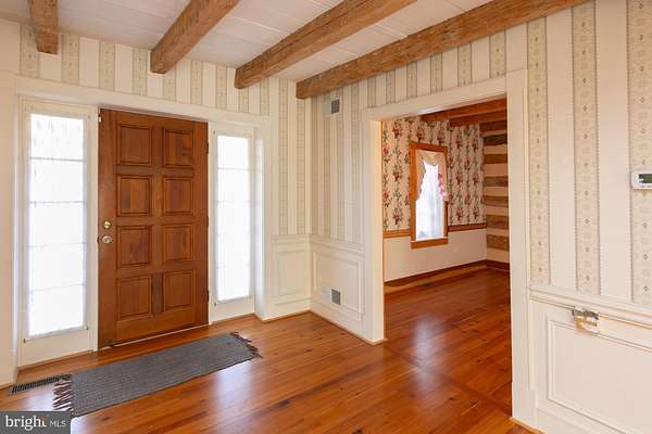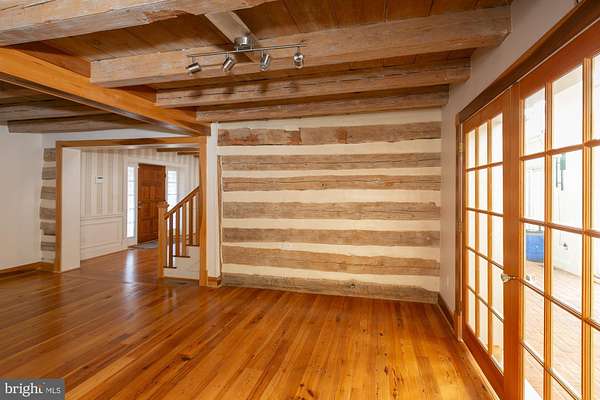 PRICE DROP A Thing of Beauty is a Joy Forever Unique Historic Contemporary Country Estate c 1784 An Oasis out of the ordinary, You'll never find this again. Home preserved and expanded with multiple additions of modern contemporary construction; 4756 sq ft. sited on 4.87 acres. Less than a mile down the road from the well known Woods Resort (public golf and spa). High quality beautiful home and grounds includes exposed log and stone walls, beamed ceilings, 4 working fireplaces, incredible glass and brick hallway, heart pine floors, marble flooring, large first floor primary bedroom suite, kitchen high end appliances Wolfe gas stove, Sub zero refrigerator, granite counter tops. board /batten cypress exterior, redone concrete basement, solar panels have significant impact on heating costs. Gardens and raised beds , mature trees, spring fed pond, pergola, barn, outbuildings. Mountain views. Peaceful serene setting. Location midway between Martinsburg and Berkeley Springs ( hiking, river sports and good restaurants) provides ez access to I-81 and short distance to Marc Commuter train in Martinsburg. Call for a tour.