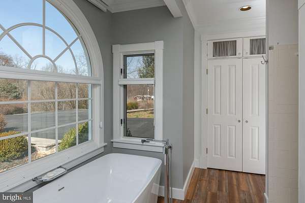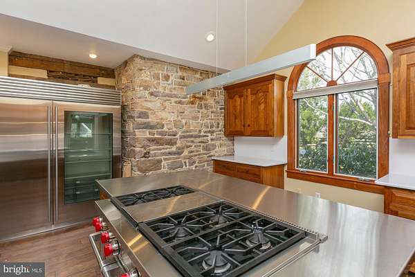 - Built-Ins, Combination Kitchen/Living, Crown Moldings, Dining Area, Entry Level Bedroom, Family Room Off Kitchen, Gourmet Kitchen, Island Kitchen, Primary Bath(s), Skylight(s), Soaking Tub Bathroom, Table Space Kitchen, Upgraded Countertops, Walk-In Closet(s), Water Treat System, Wood Floors, Wood Stove
