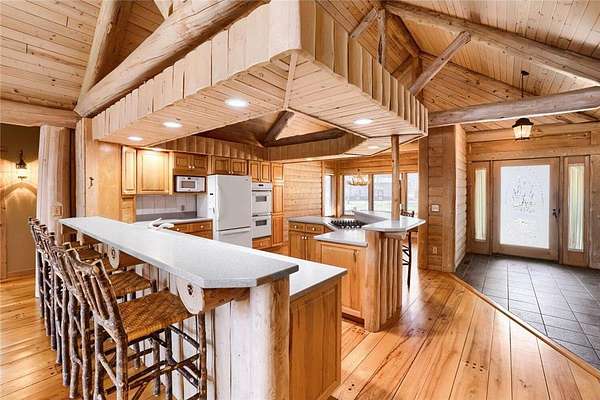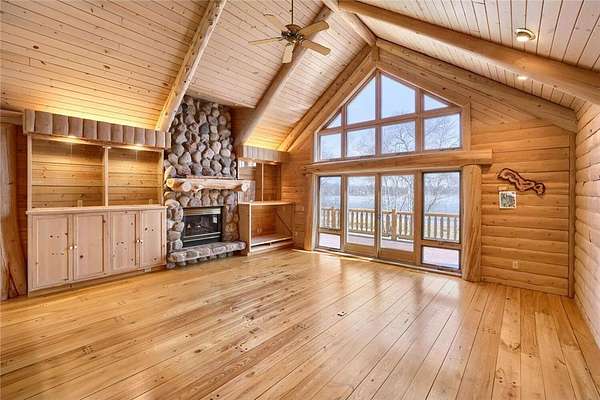 Whoever said that money cannot buy happiness never lived in this home! Welcome to 25493 West Comfort Lake Drive, a stunning lakeside retreat that spans over 4,700 square feet on the western shores of Comfort Lake, a serene, full-recreation lake just 30 minutes from the Twin Cities. This unique custom-built sanctuary offers an unparalleled escape, featuring impressive vaulted ceilings with hand-scribed beams, imported logs, ash hardwoods imported from Vermont and expansive windows that frame breathtaking eastern exposure views of the beautiful lake.