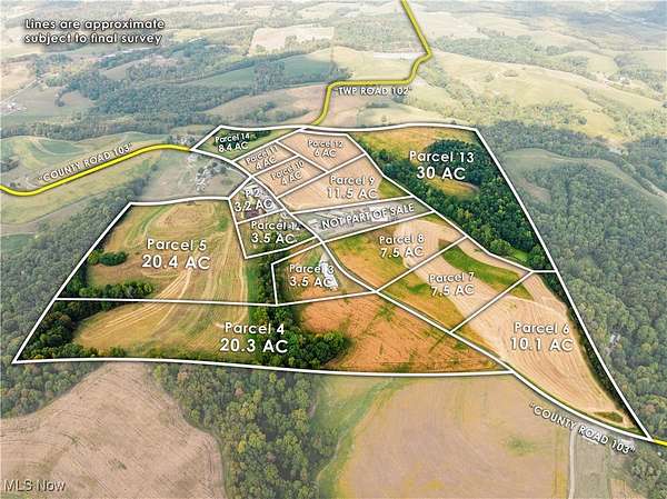 An excellent offering of 140 acres in 14 parcels with a great selection of open/tillable land along with wooded/recreational hunting land in a good location between Bakersville and Newcomerstown. The farm has over 7,000 feet of road frontage on CR 103 & TR 102.? Improvements include a 2-story farmhouse that was originally built in the late 1800s with additions and renovations done since. Outbuildings include an older bank barn, free stall barn and several older outbuildings. The land offers mostly open parcels with a few being open and wooded.