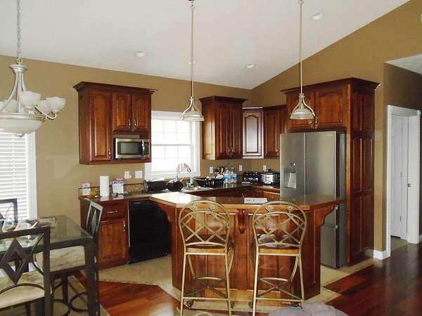 - Cathedral Ceiling, Ceiling Fan(s), Floors-Hardwood, Floors-Tile, Island, Split Bedroom